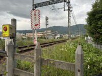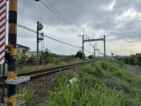 両駅の中間付近にある、人道用のトンネル付近は、線路が築堤で、複線分の用地がそのゆるい法面となっている。柵も低く、南からの撮影で東西両向きに行けるので撮影にはもってこいか。