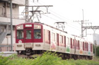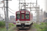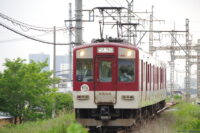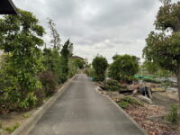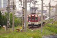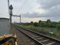 河内山本から外環状線までは住宅街が続いているが、外環状線を境に一変し、沿線には造園業者が多く見られるようになる。そのため建物が減り緑が多くなるが、その中でも特に見通しの良い場所。手前が畑で、奥の線路は外環状線を渡るために築堤となっている。