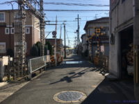 なおこの道はだいたい平地と生駒山麓の境目を通っており(新石切駅の脇、瓢箪山駅前など)、ここでもこの道を境に山登りへと移る。