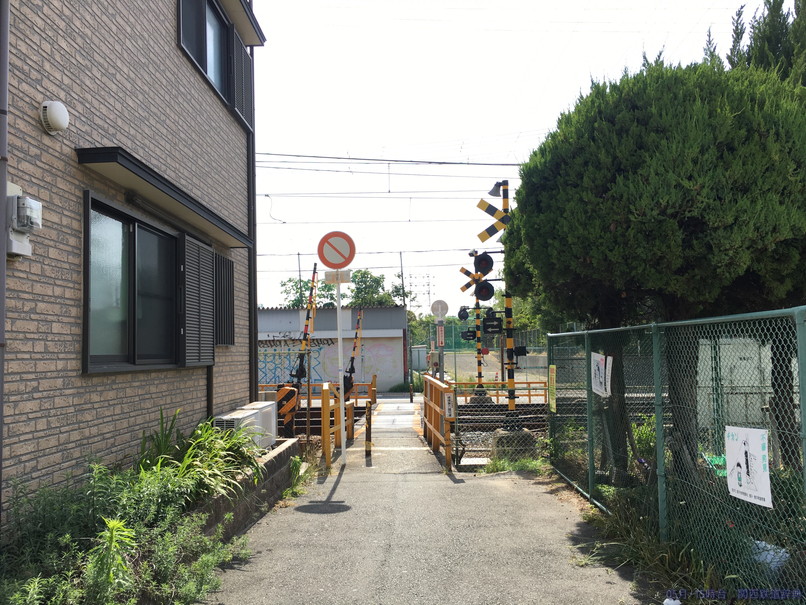 この駅間で線路は名神高速と並んで内環状線の高架もくぐる。この内環状線の側道にあたる踏切がこの踏切。