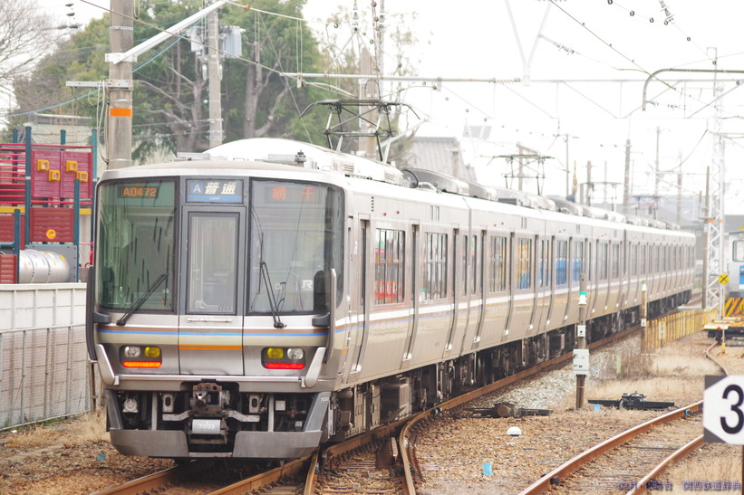 英賀保はいわゆる国鉄型2面3線で、南側の相対式ホームが下り線、島式ホームのうち中線が待避線、北側が上り線となっている。上り列車を撮影するには島式ホームの岡山側端部のほうが良い。ホームは広めなので撮影には十分角度が取れる。