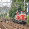 なので一時的な可能性はあるが、この仮設道路南端付近からが最も大鳥居と列車が見通しやすかった。列車単体で撮るのも草が比較的少なく望遠で草が切れる場所を狙えばいい。大鳥居の存在感を中心にするなら、望遠で列車は先頭のみとして大鳥居を大きくするべきか。