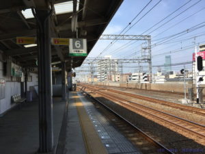 南海本線は島式ホーム。下り線は階段で見えないが、上り線は外側に上り通過線(5番線)があるので撮影できる。ただ、通過列車をホームを入れずに撮影するのは難しい。