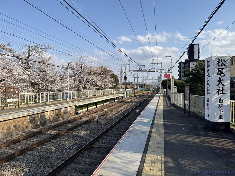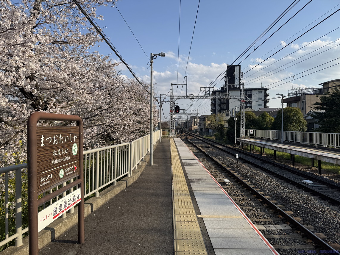 嵐山線の中間駅のひとつ、松尾大社。建設のいきさつもあって上桂と似たような駅ですが、微妙に前後が違うので、使い分けでしょうか。この駅も両ホームに改札がありますが、改札内移動が可能です。