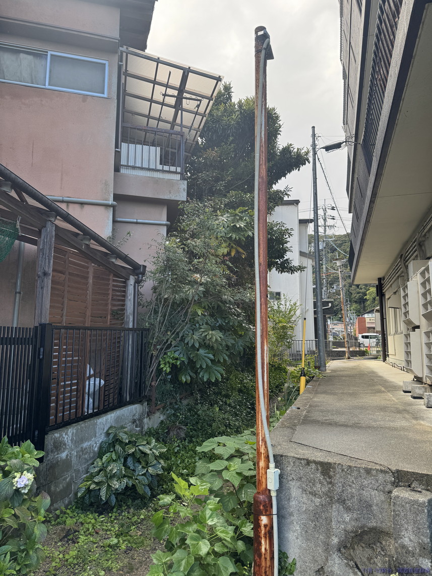 ↓すごく狭い路地にバス停があって、乗降中はめっちゃ防ぎます
