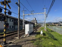 名前通り松尾大社駅下手。ここも線路東側からが撮影向きですが、嵐山方向は機器箱があって見づらいです。