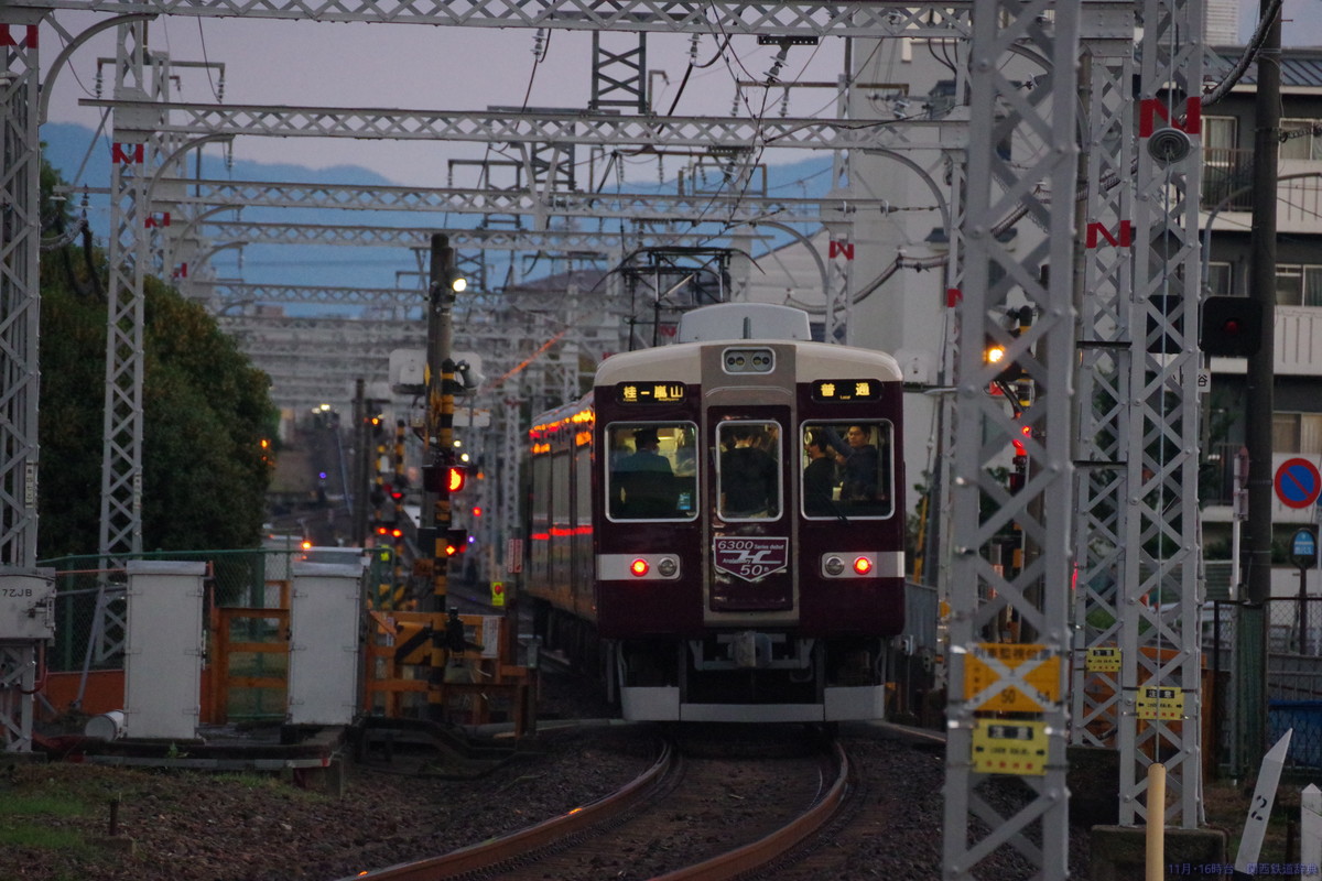 西宮北口 – 夙川 -(駅間)- 芦屋川 – 岡本 – 御影 -(駅間1 駅間2 駅間3 駅間4)- 六甲 -(駅間1 駅間2 駅間3 駅間4)-王子公園 – 春日野道 – 神戸三宮