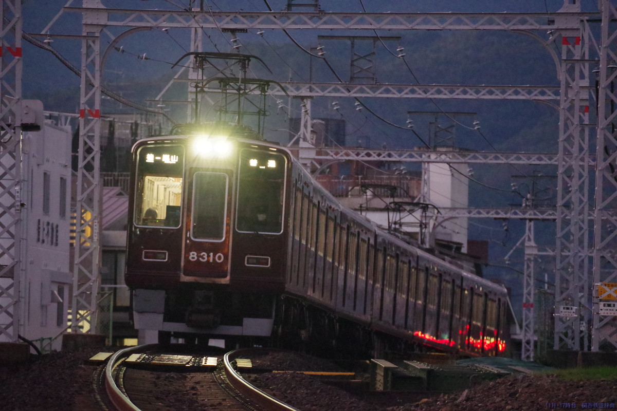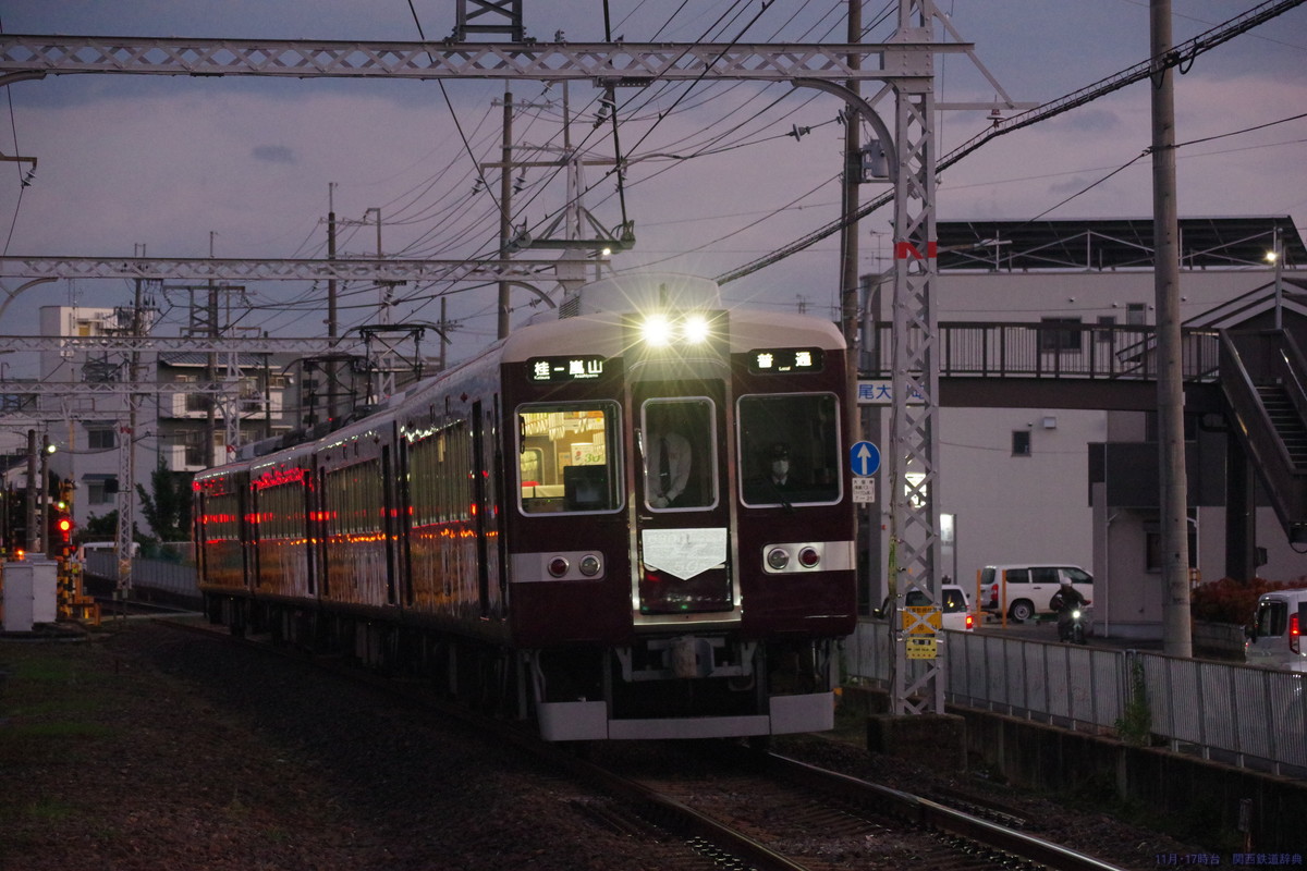 梅田 – 中津 – 十三 -(駅間1 駅間2 駅間3 駅間4)- 神崎川 -(駅間1 駅間2)- 園田 -(駅間)- 塚口 -(駅間)- 武庫之荘-(駅間)- 西宮北口