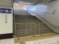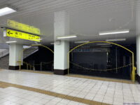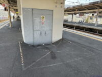 ↓ホームかさ上げの跡か、業務用入口(エレベーター?)だけ凹地に
