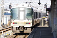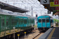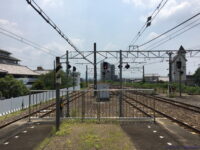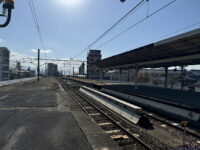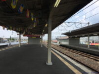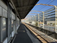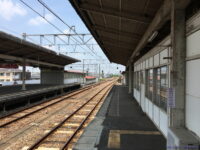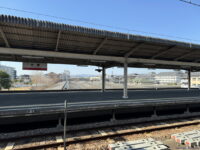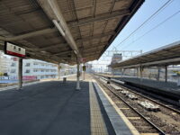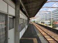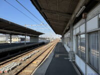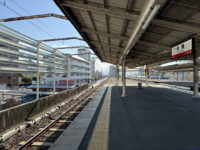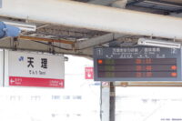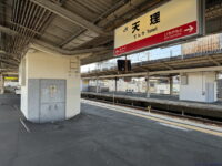 ホームからも天理教独特の様式による建物が多数眺められる、天理駅。高架島式2面4線のホームは片方の島が通常利用、もう片方が天理臨用の臨時ホーム。臨時ホームの方が屋根が長いということが、いかに多くの客を待たせていたかを伺わせます。多くの信者を迎えた臨時ホームも、コロナ前から天理臨が縮小していったのに合わせて閑散としていき、もはや旅客の乗降に使われているのか…?桜井線は長編成対応のホームが多いので、島式の駅は撮影に不向きですね。