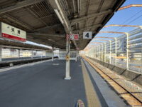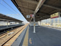 高架島式2面4線の天理駅ですが、東側3・4番線のみが定期列車用のホーム。3番線が奈良方面、4番線が高田方面となります。高田方は屋根のあるところまで黄線で、その先まだ5両分くらいあります。
