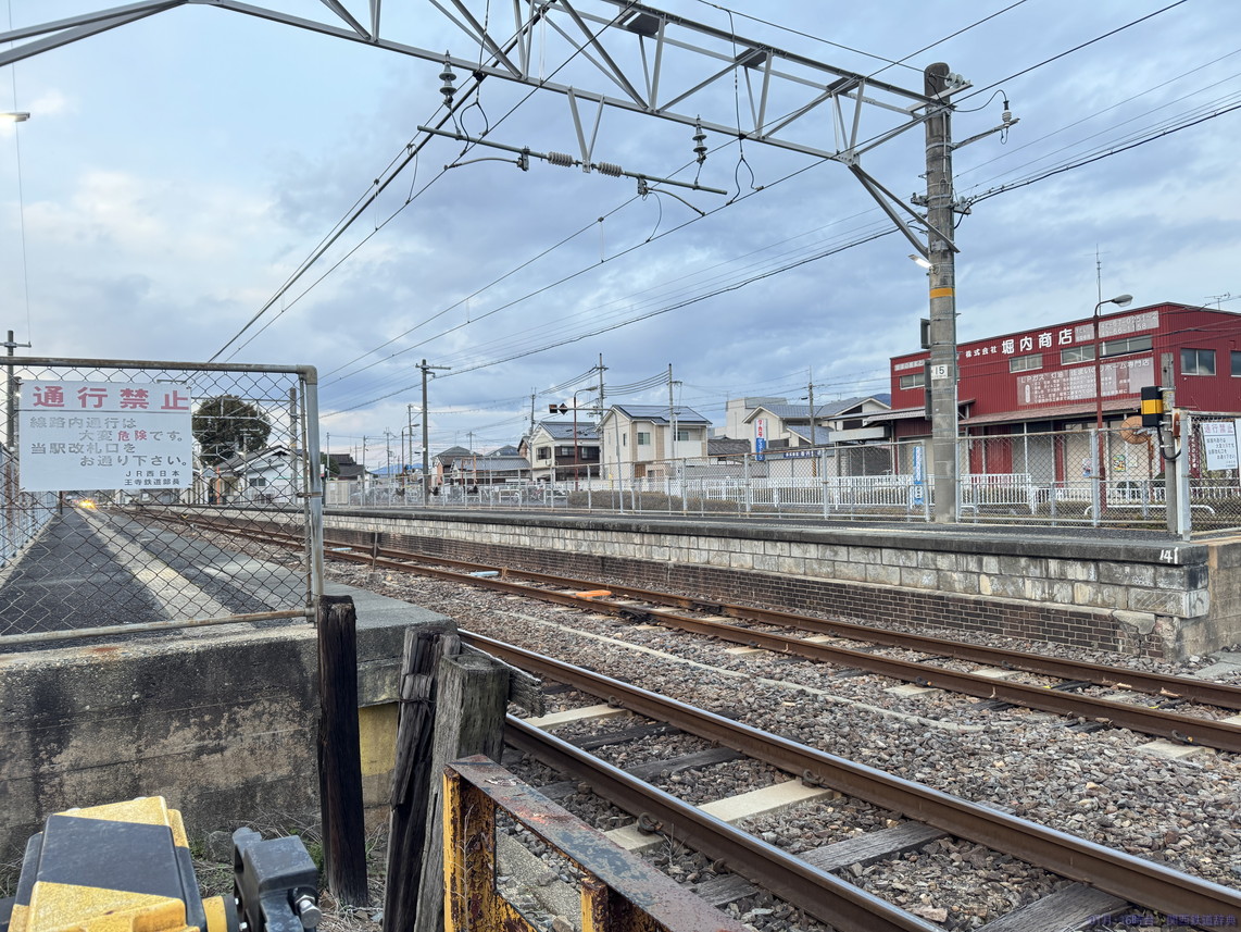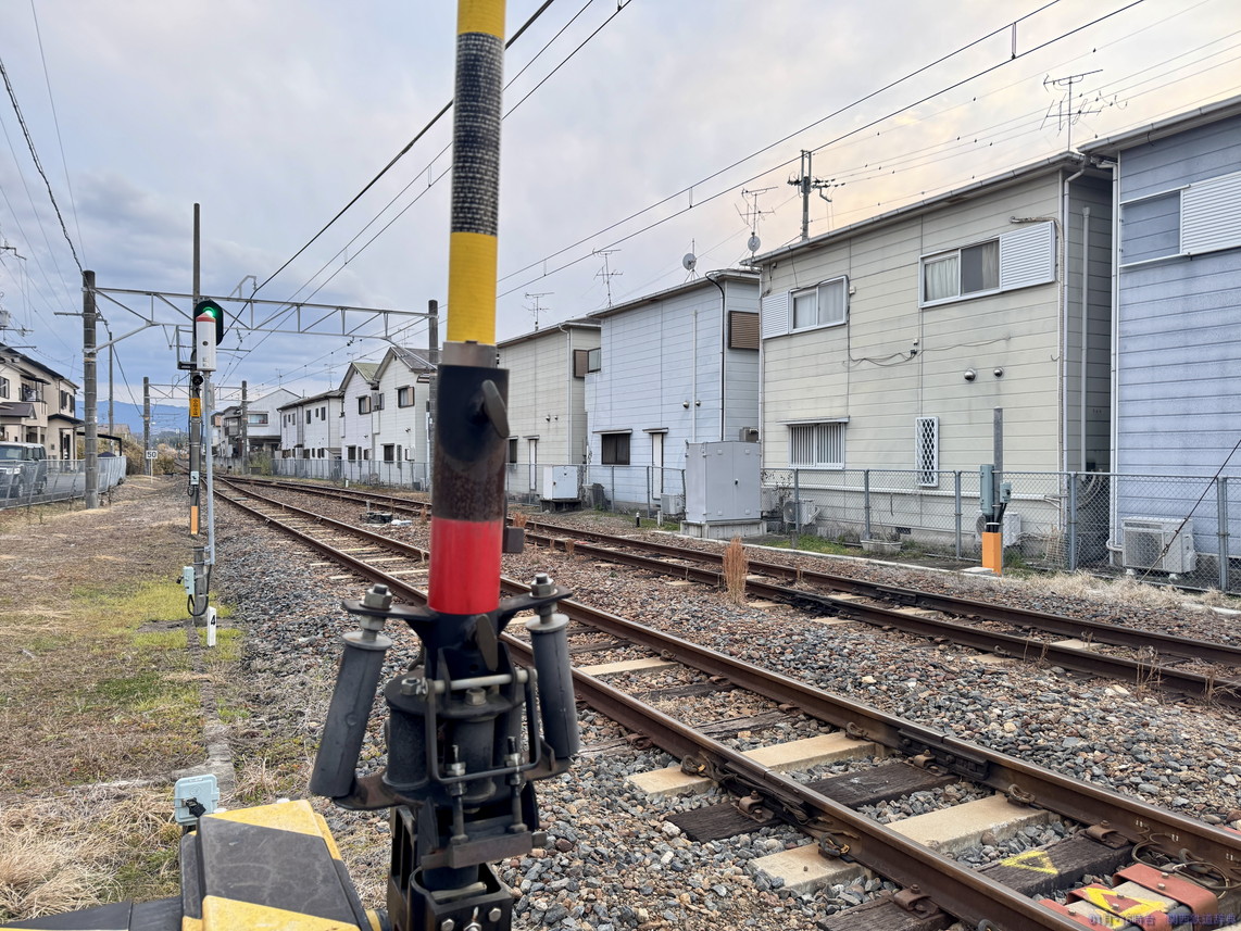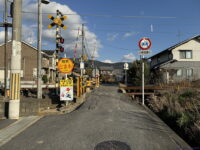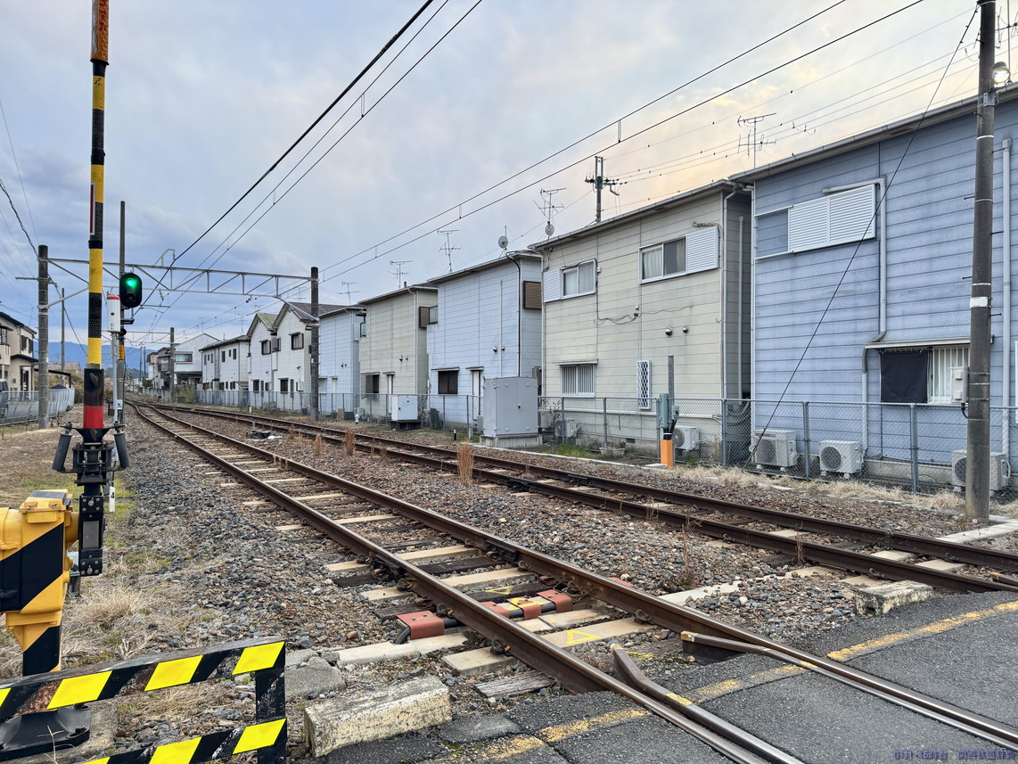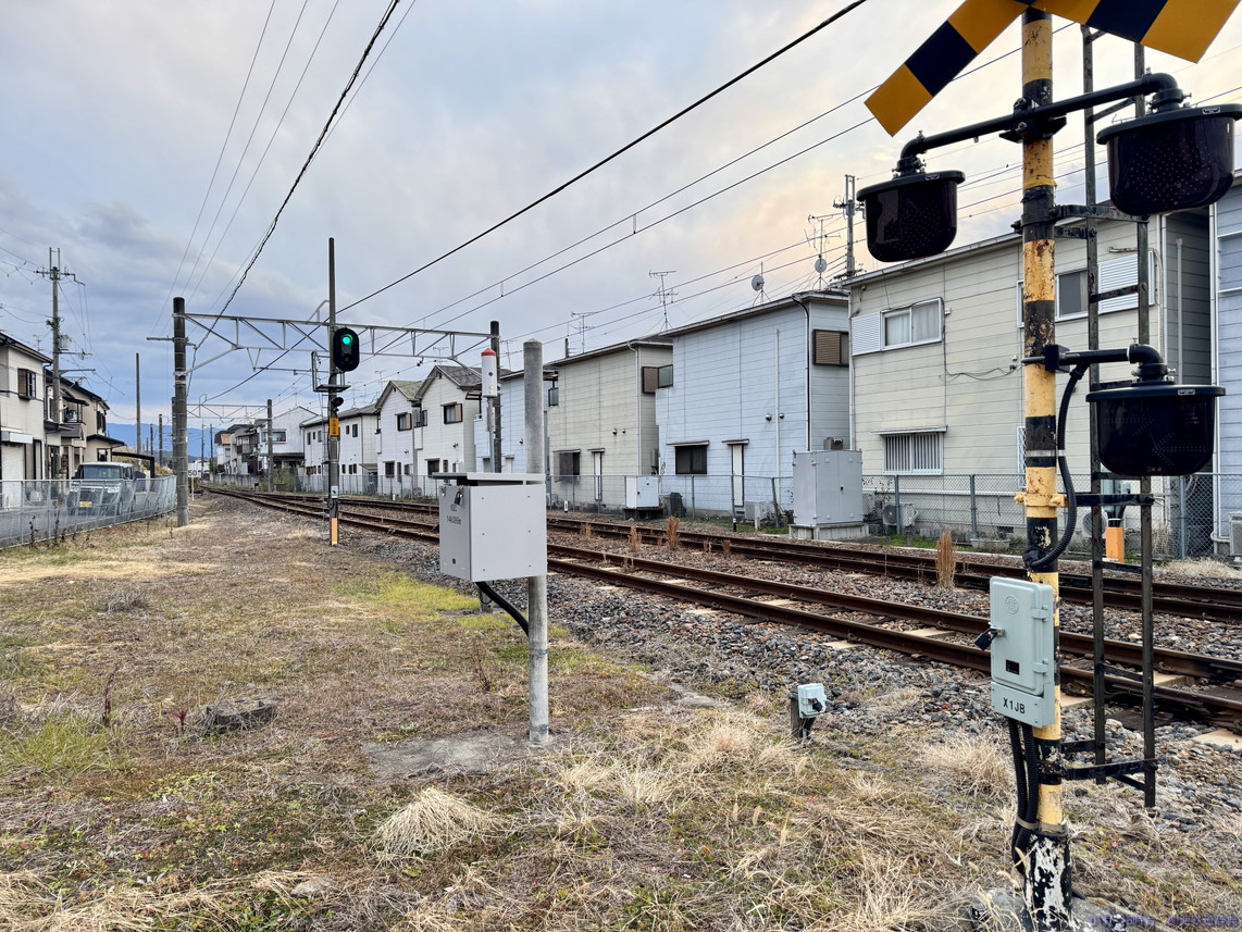 相変わらず架線柱は東側ですが、西側から奈良方を向いての撮影については、踏切脇に信号柱など柱があって、踏切から離れると被りが避けられません。高田方を向いての撮影は、踏切脇に何もなく、とても撮影しやすいです。夕方遅くの奈良行き列車が一番良いかも。