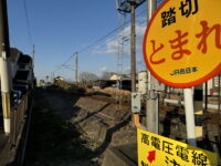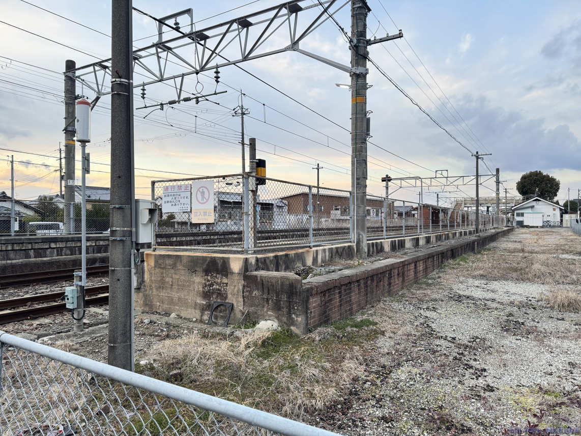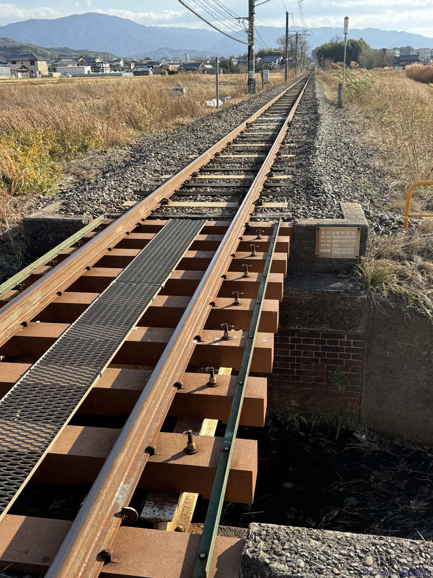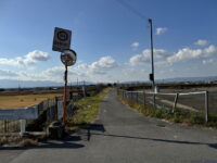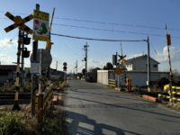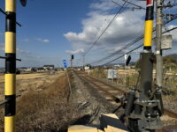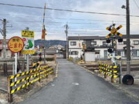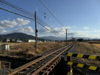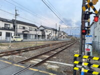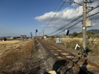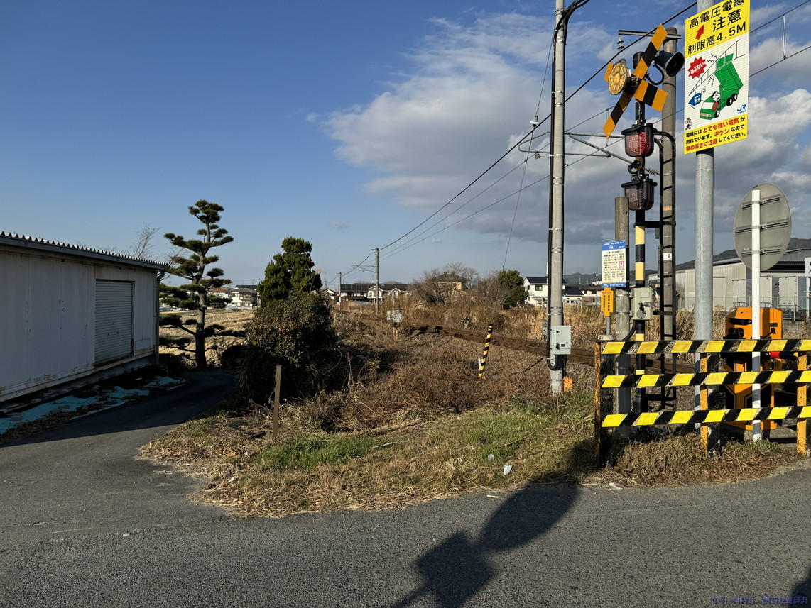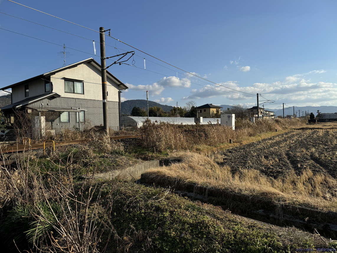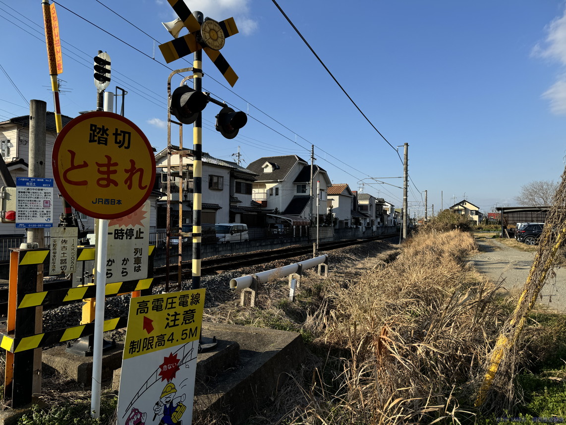 この踏切ではもう単線になっています。柳本の集落はここまでという感じで、道路の南側には農地が広がりだしますが、まだ家もいくらかあります。