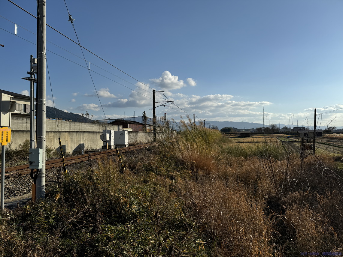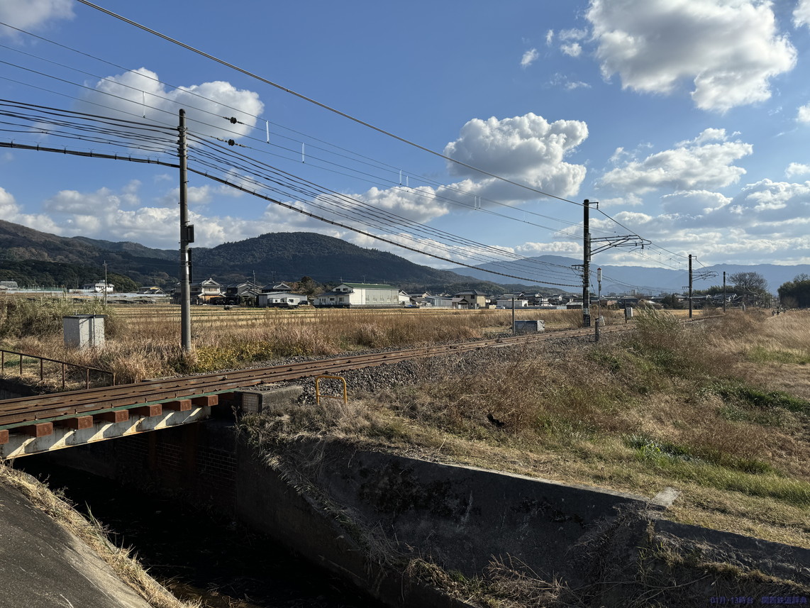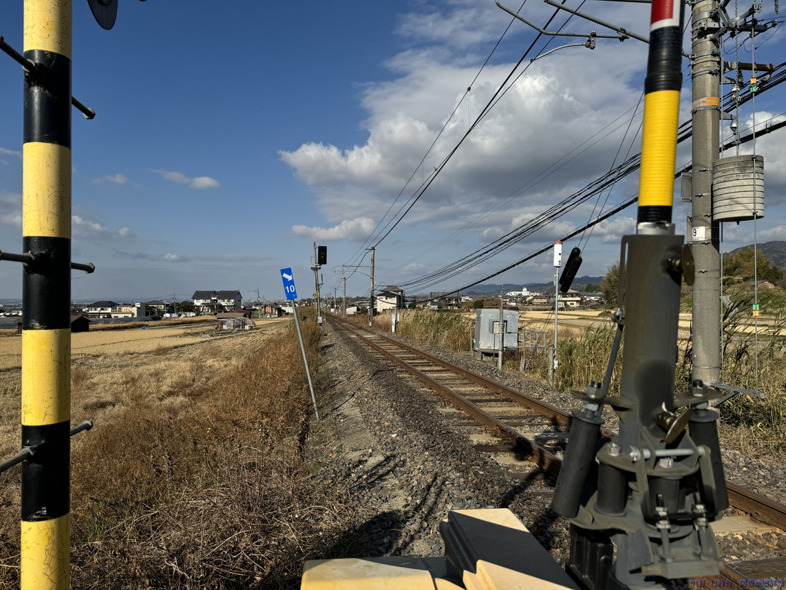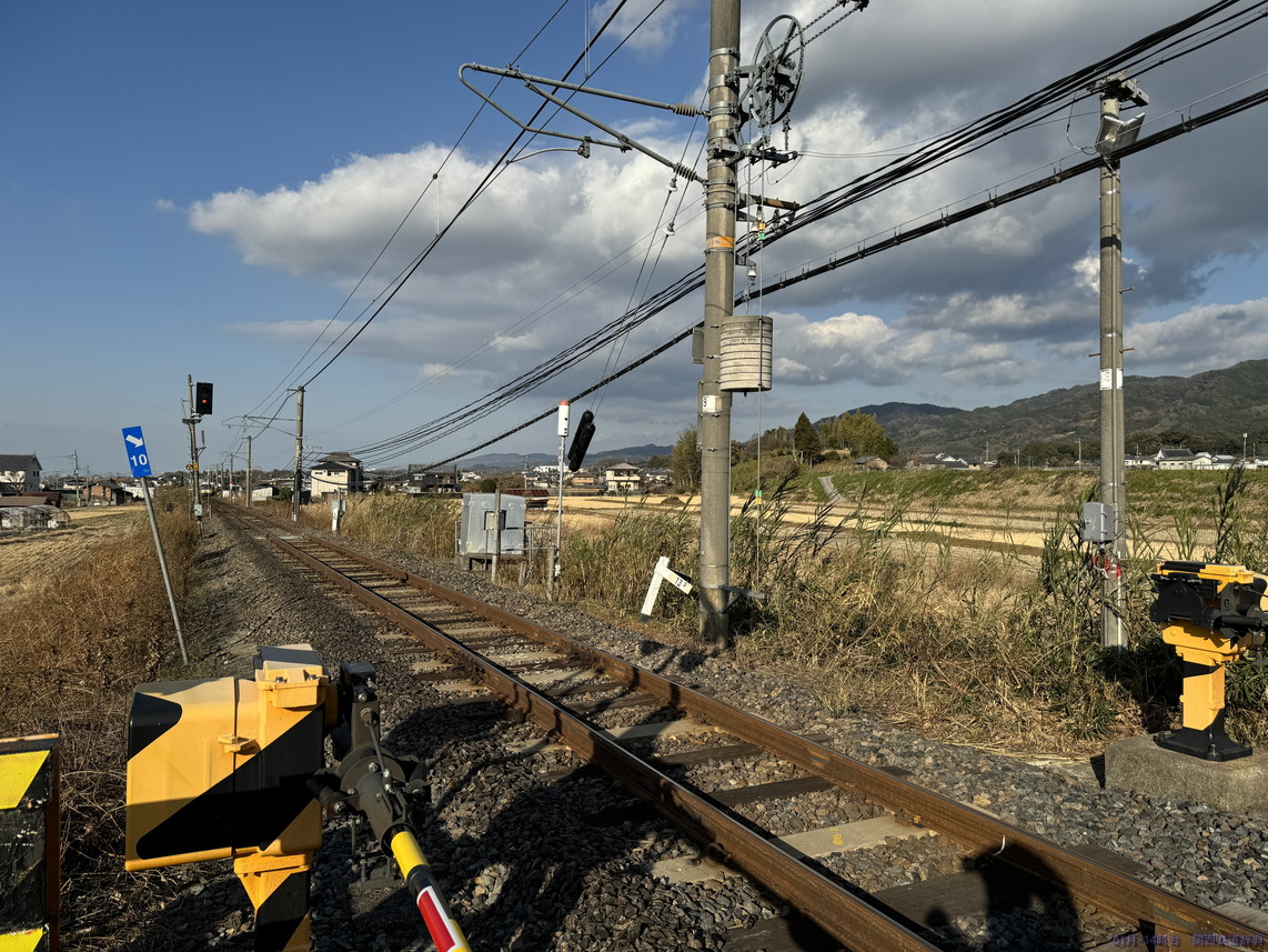 柳本駅と巻向駅との間もやっぱり広い農地エリアがあります。その1はその農地に入るまでの集落エリアと農地北側。架線柱が東側についており、正午前からの高田方面行き列車の撮影に向いています。