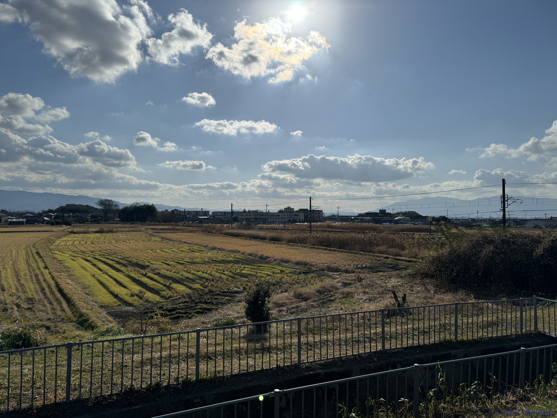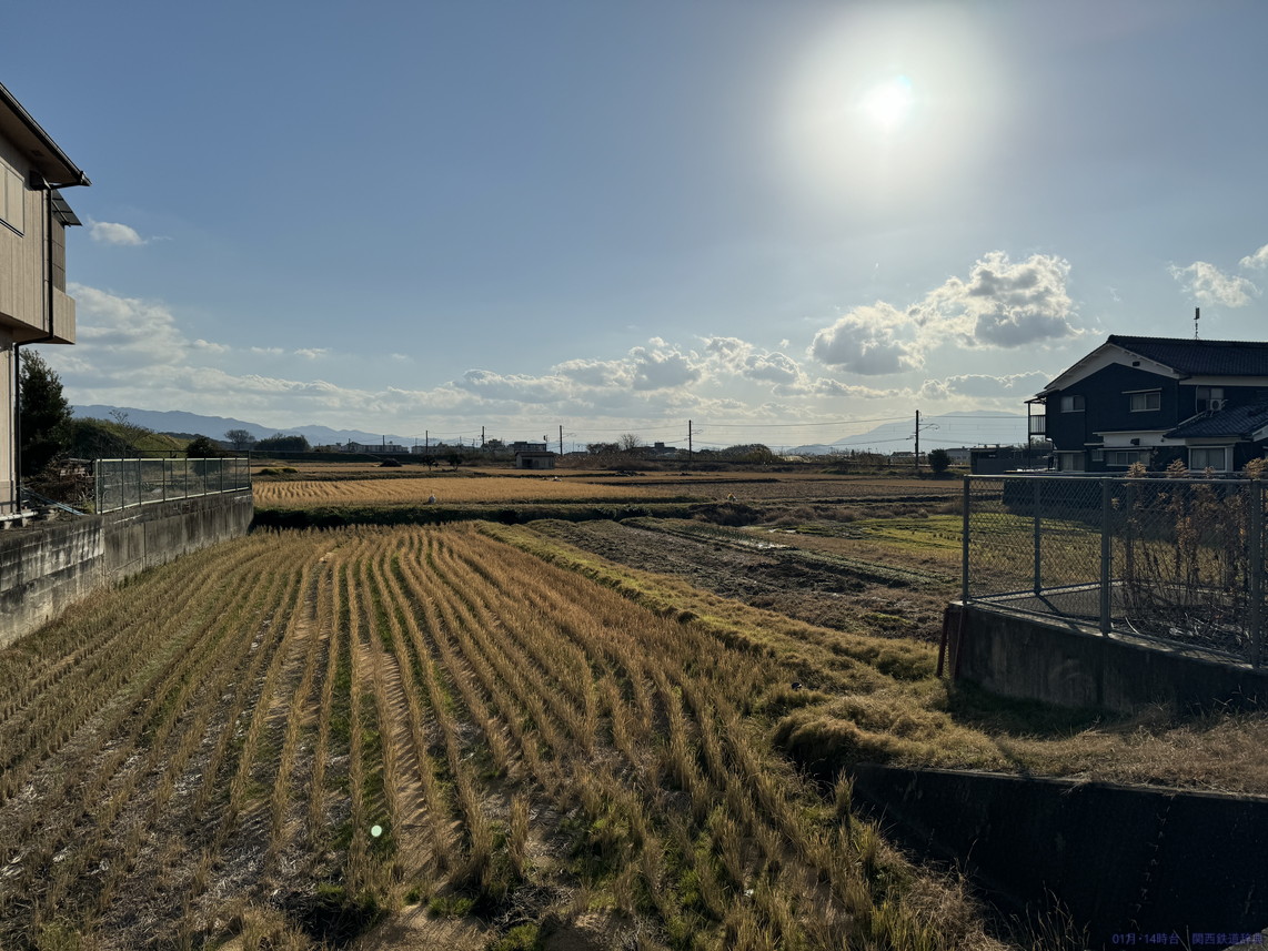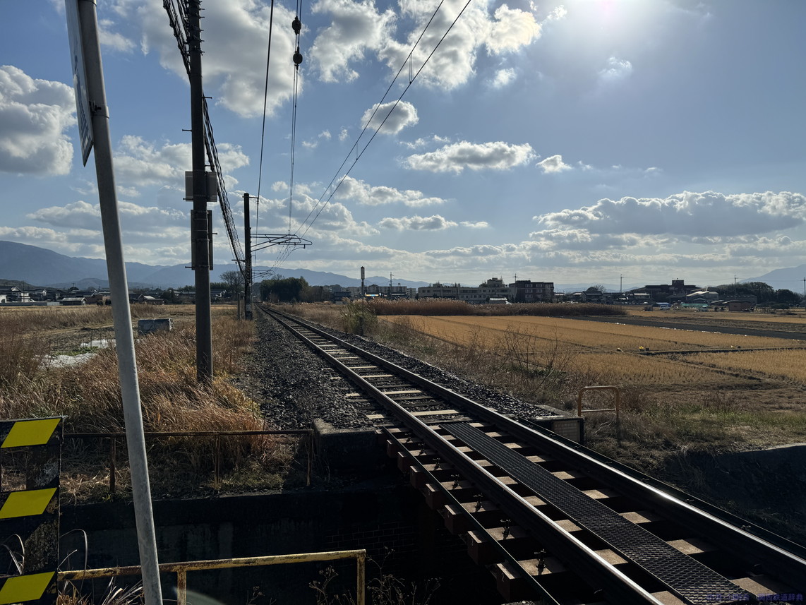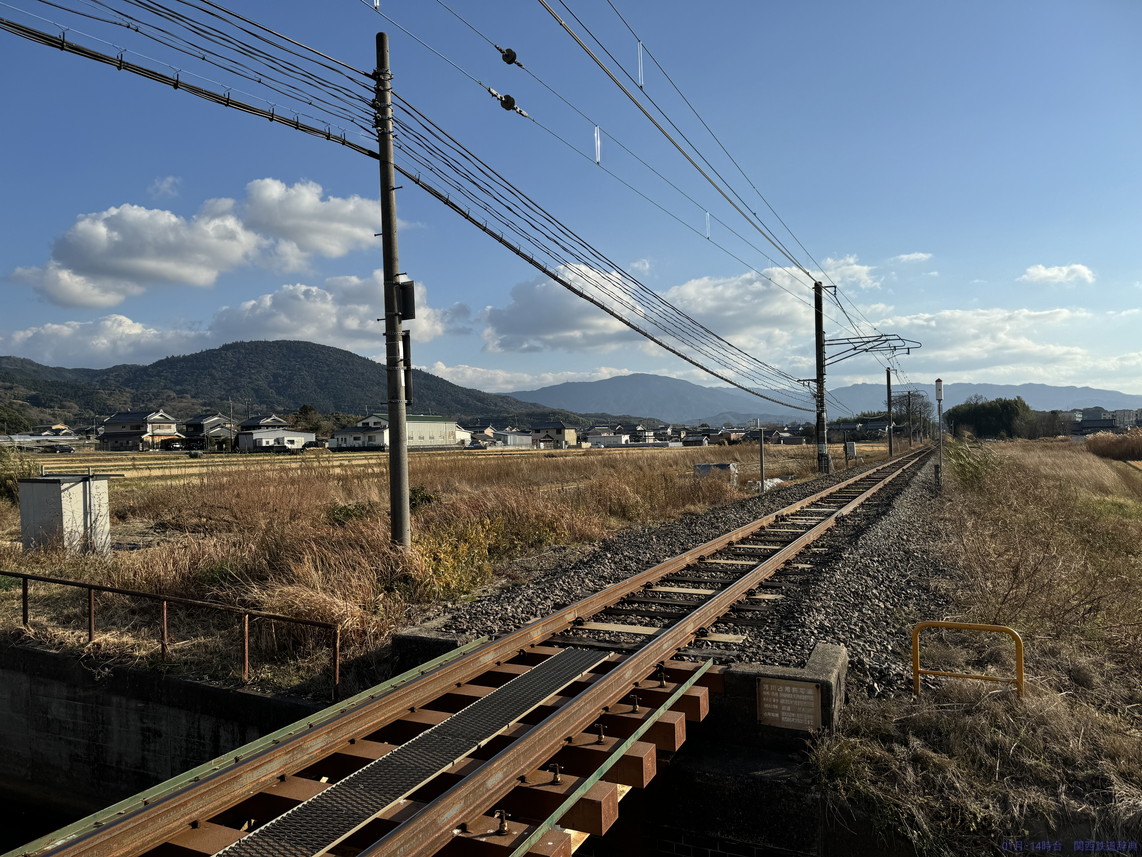 柳本駅と巻向駅との間もやっぱり広い農地エリアがあります。その1はその農地に入るまでの集落エリアと農地北側。架線柱が東側についており、正午前からの高田方面行き列車の撮影に向いています。