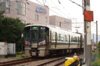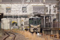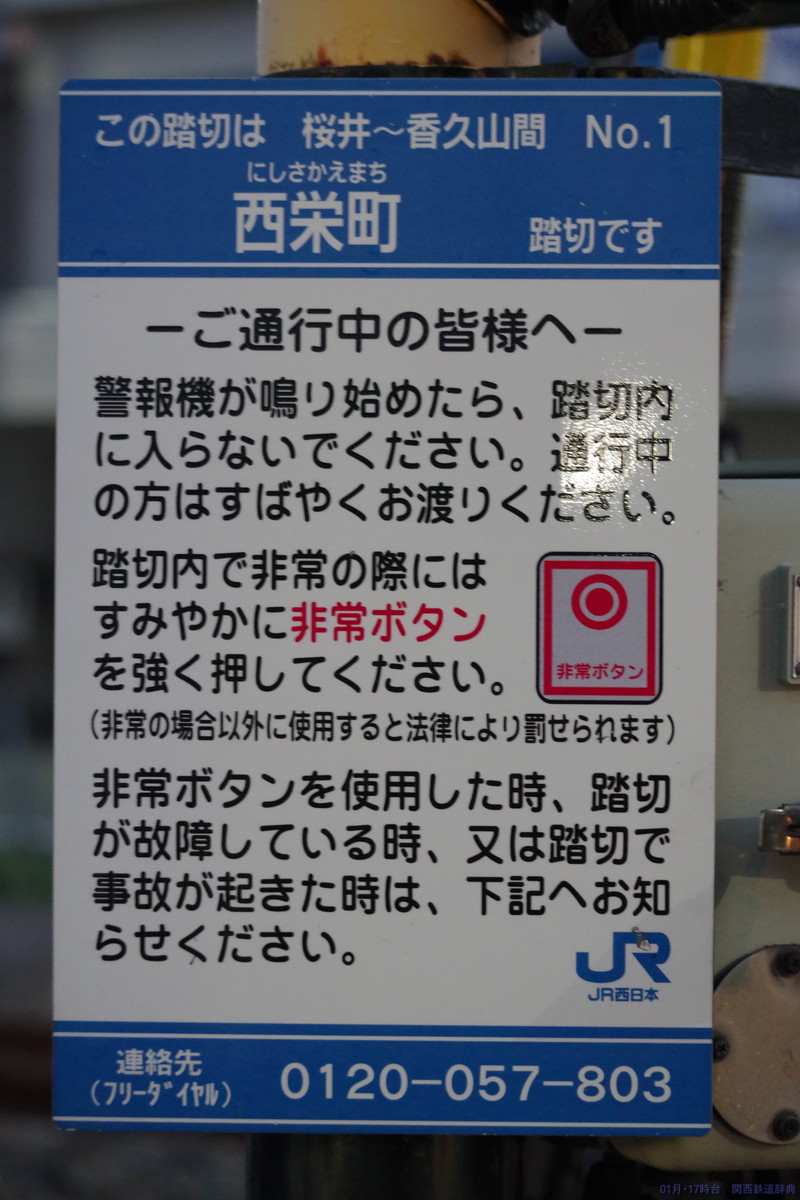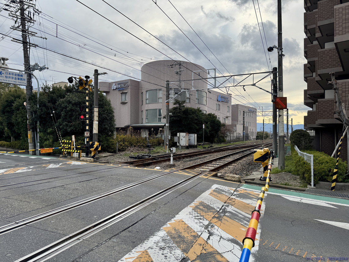 桜井駅のすぐ横にある踏切です。ここまではまだ構内で、実質複線。踏切の西で単線になります。広い踏切で撮影は容易です。