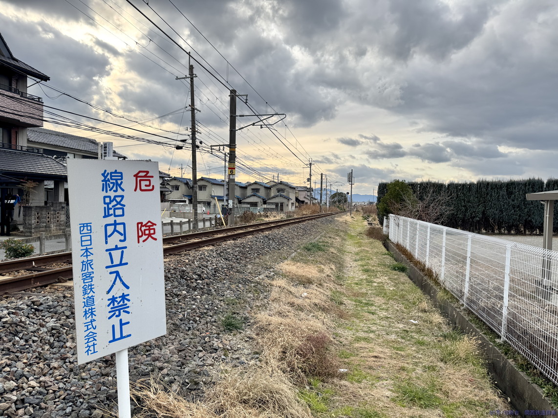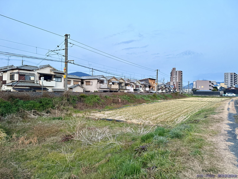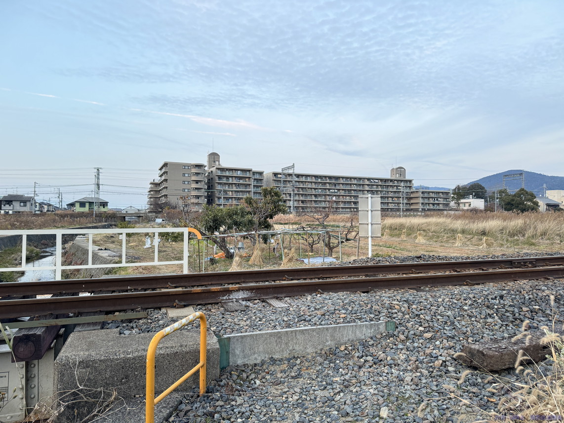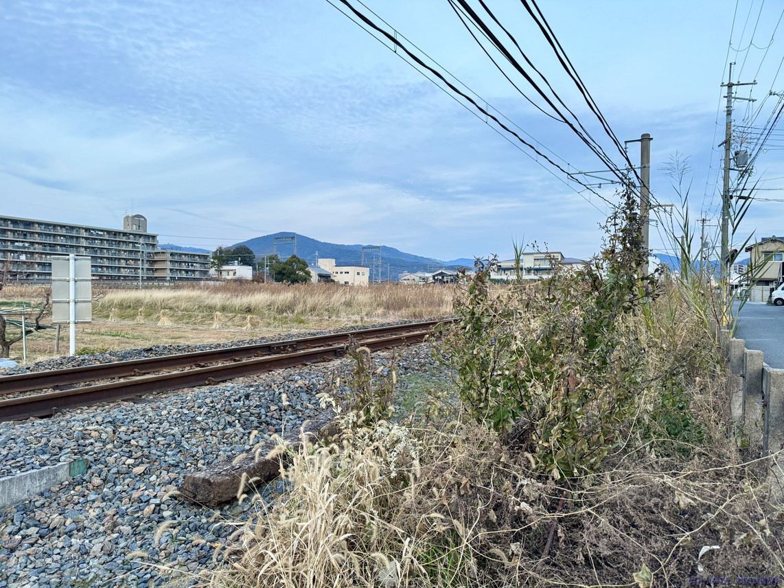 桜井線は桜井で大きく向きを変え、東西に走るようになります。桜井駅付近の市街地を過ぎるとしばらくして近鉄との間が広い農地になります。その1はその農地の東端までです。