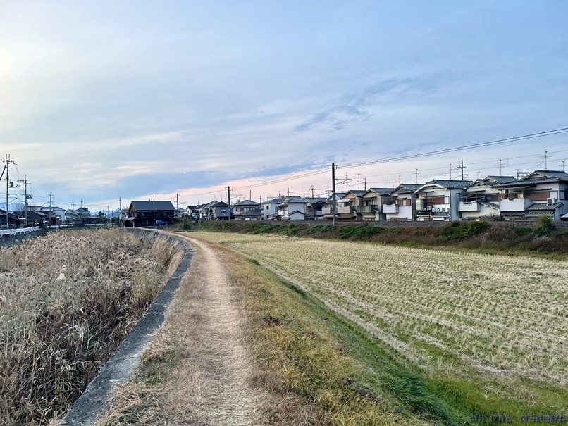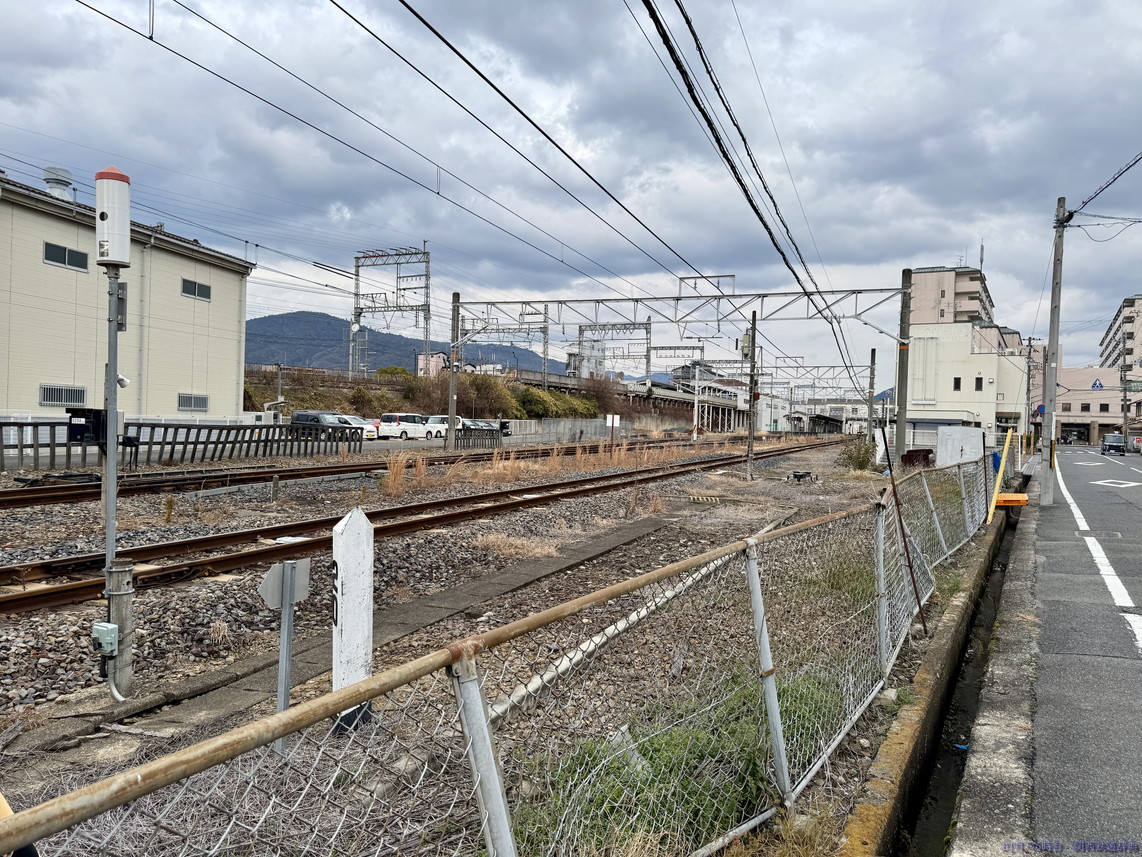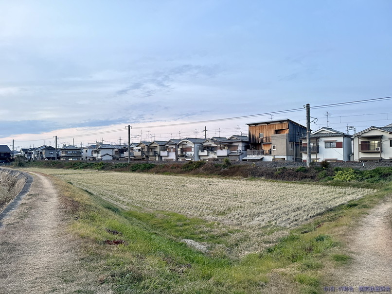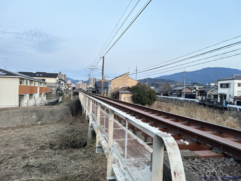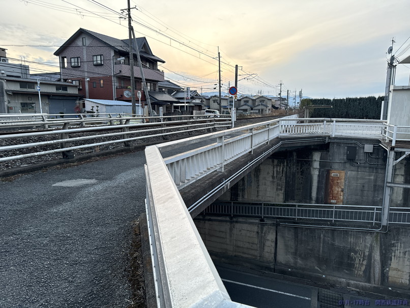 桜井線は桜井で大きく向きを変え、東西に走るようになります。桜井駅付近の市街地を過ぎるとしばらくして近鉄との間が広い農地になります。その1はその農地の東端までです。