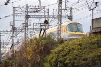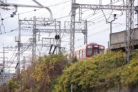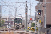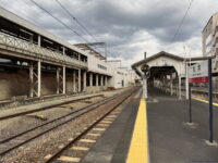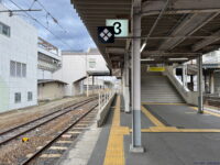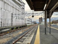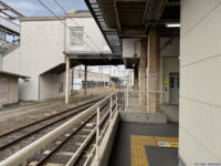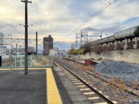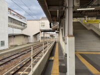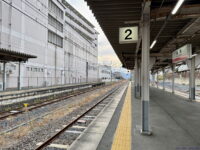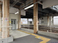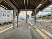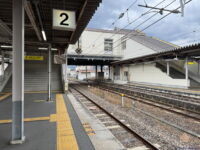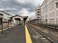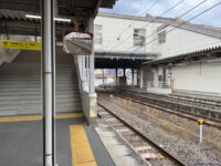 駅の奈良方は大きくカーブしており、下り列車を撮影するなら下りホームから。下りホームはホーム奈良方にある階段の裏にエレベーターへ向かう通路があるため、そこから撮影がしやすいです。