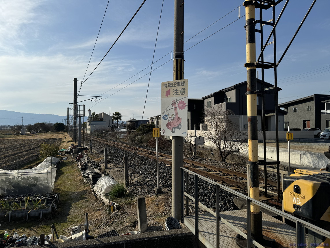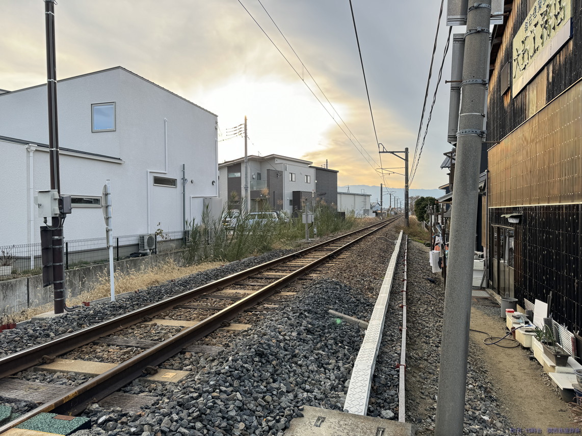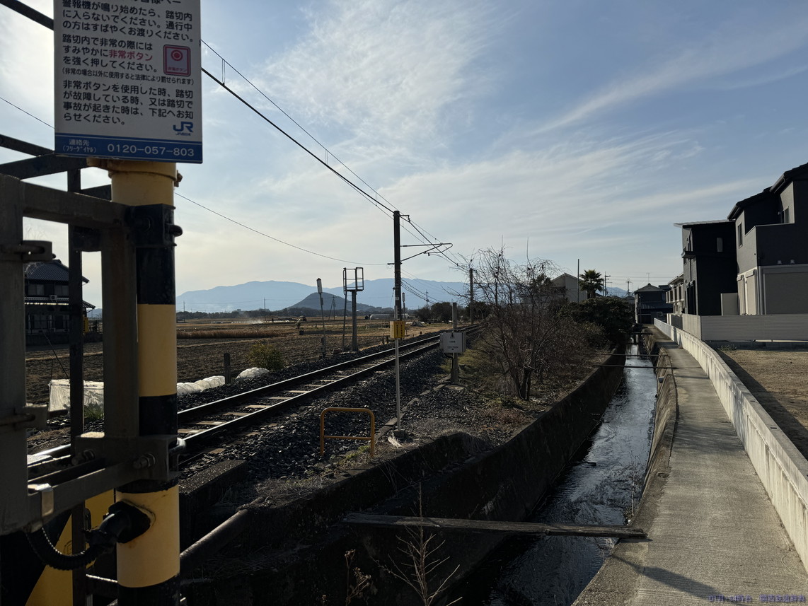膳夫踏切から少し開いて、国道が近くなってくると踏切が連続してあります。その一つ目がこの踏切で、ここまでは架線柱が南側。ということで、午後の高田方面列車の撮影に向いていそうです。