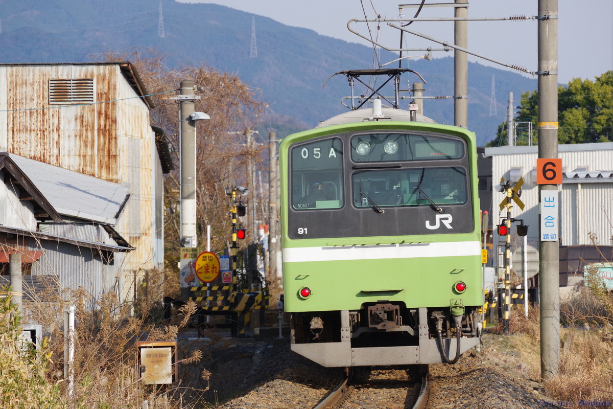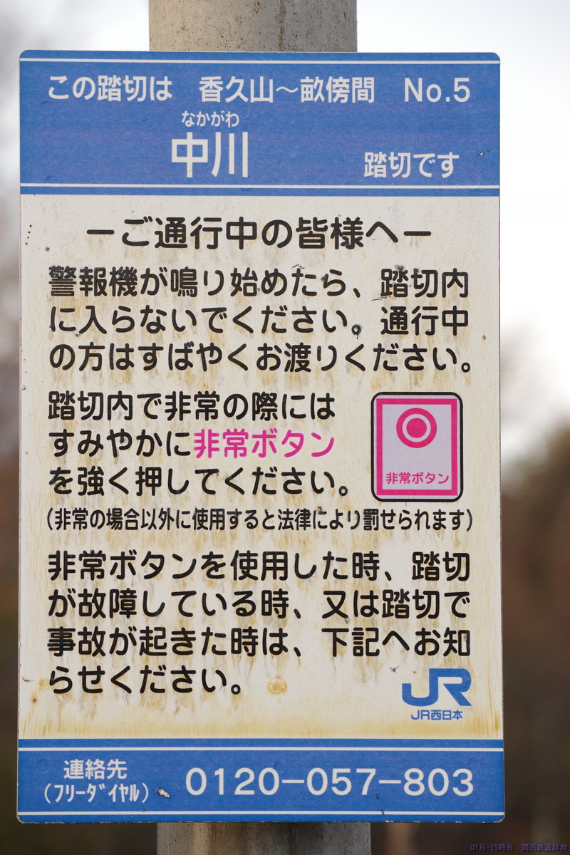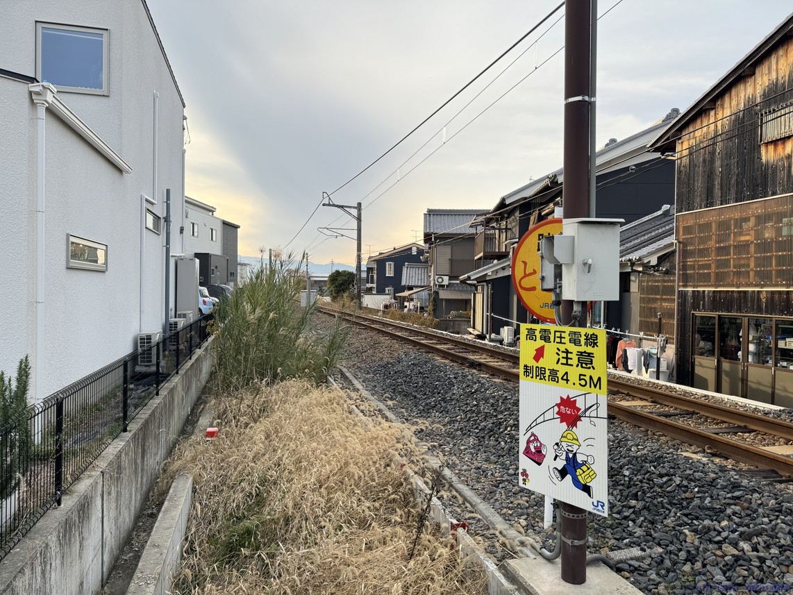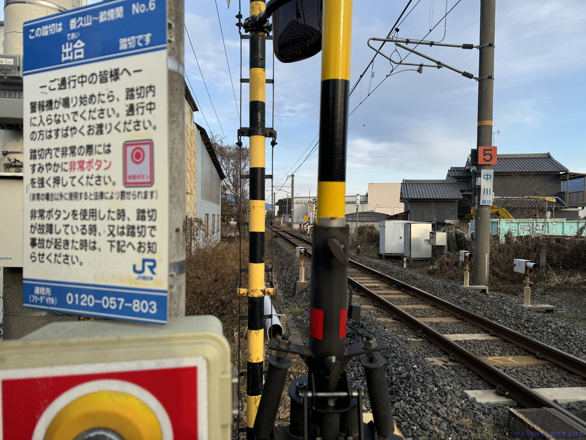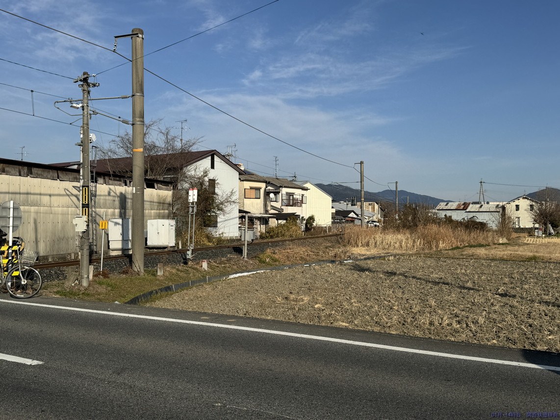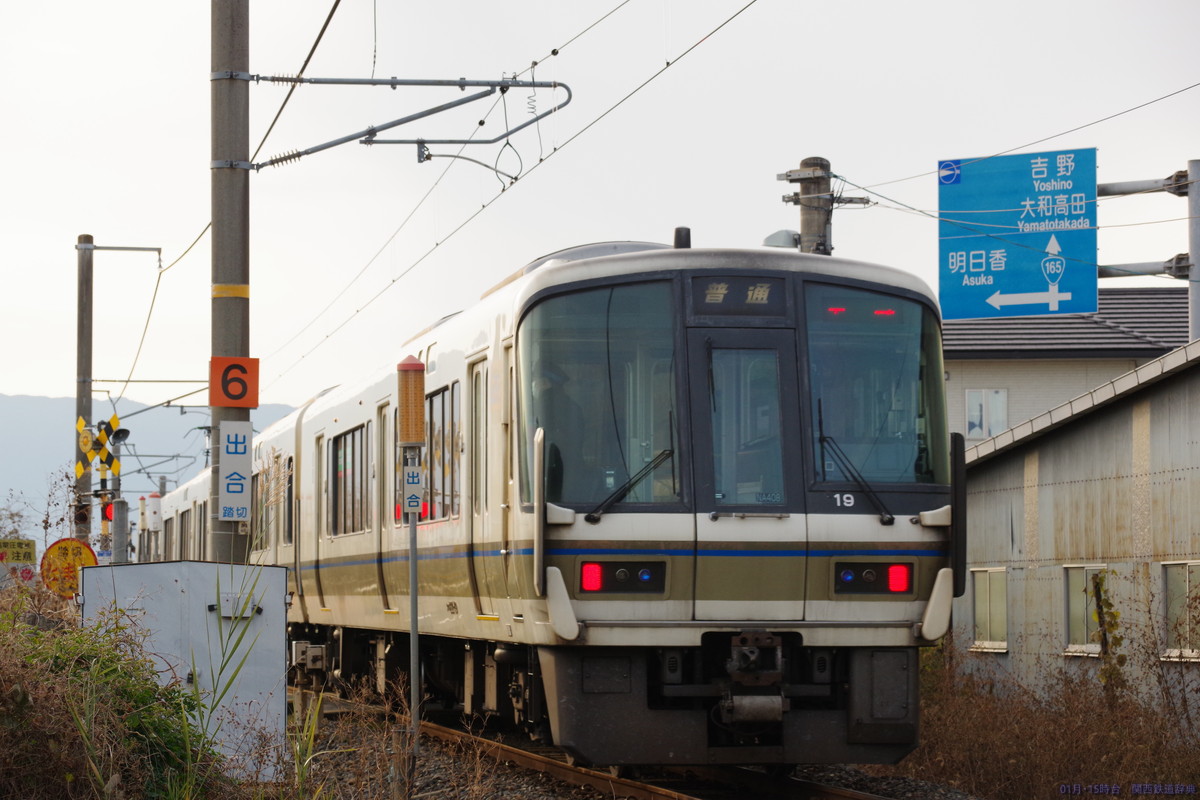 橿原(畝傍)と桜井との間で国道165号・166号・169号が三重重複していますが、その道がこの踏切から東は南側・西側では北側となり、線路と道路が入れ替わるのがこの踏切。ロードサイド店舗がかなりあるので常に混んでいそうな道です。撮れないことはないですが、ここじゃなくても感。