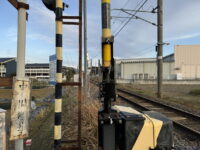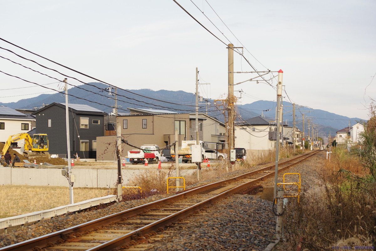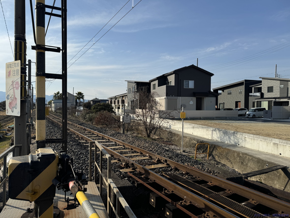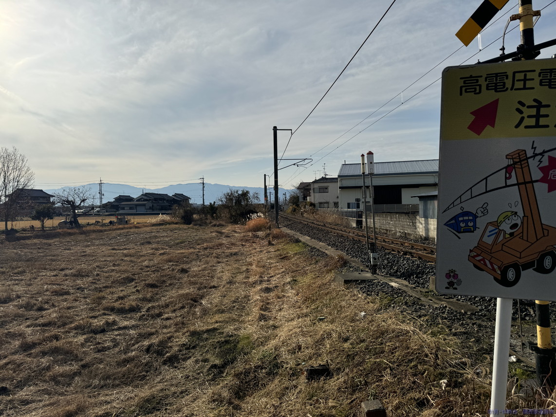 この踏切の東側で架線柱が北側から南側に移ります。なので南側からの写真は架線柱が被っています。とはいえ、北側も他の柱がちょこちょこ立っていていまいちです。