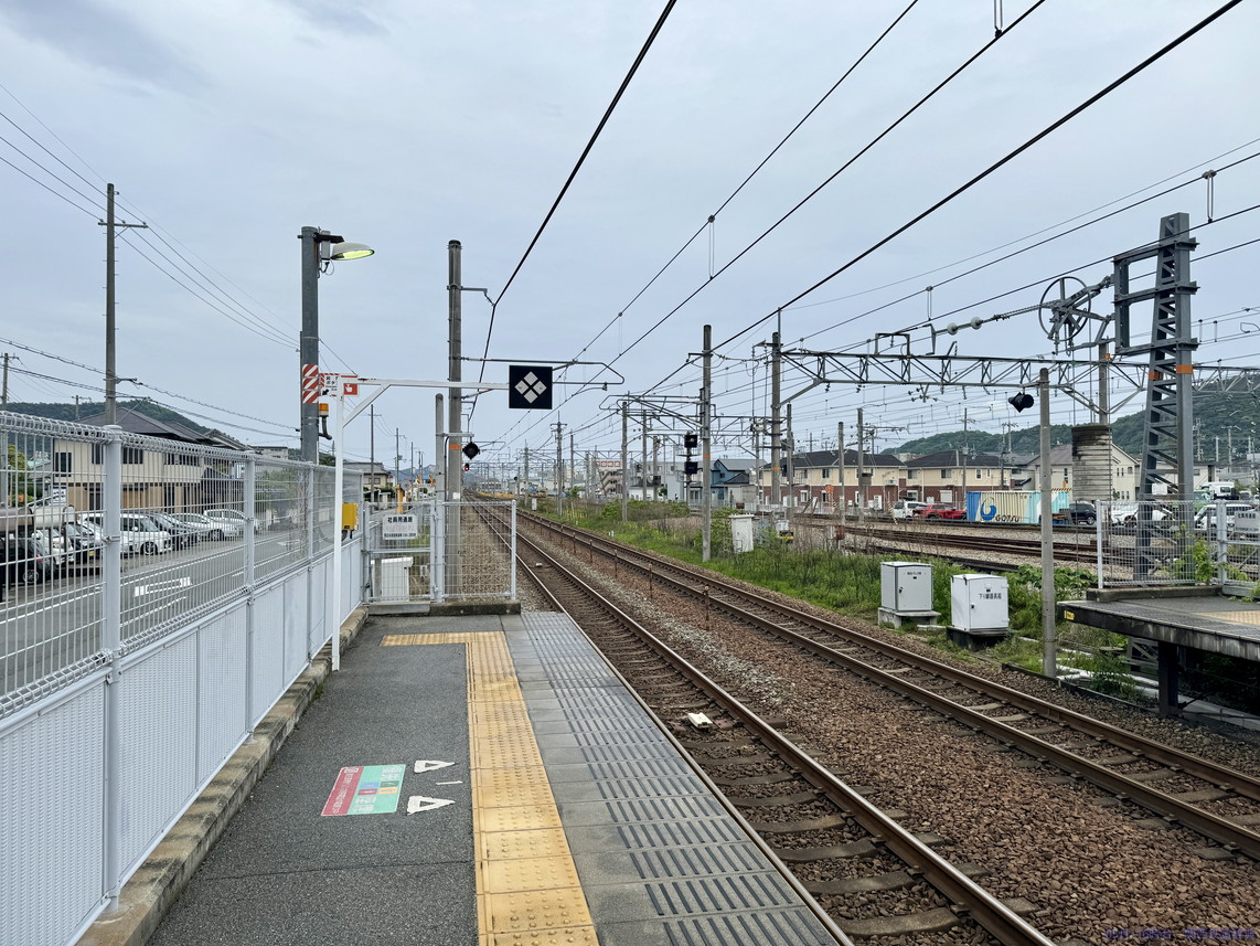 下りホームの下り方からの撮影。こちらも直線で、下り列車よりも撮りやすくなっています。ただこちらもホームは狭いので、先客がいると難しくなるかも。