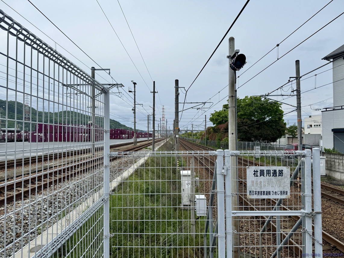 姫路貨物駅に隣接している姫路貨物駅。直線区間ゆえ望遠あれば撮影は可能です。ただ貨物駅に入る貨物列車はちょっと難しいかも。