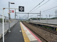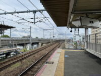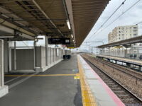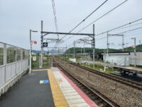 上りホームの上り方から。カーブ内側なのでこんなもんですね。