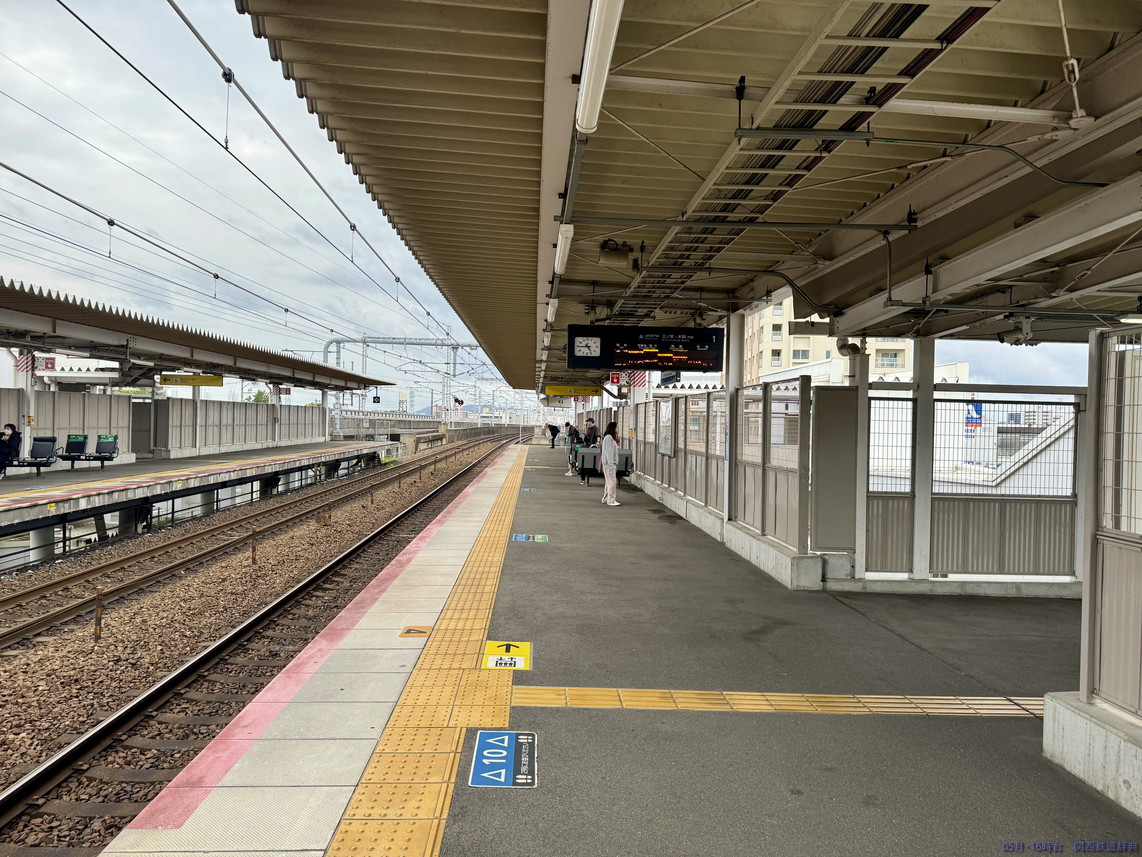 上りホームの上り方から。カーブ内側なのでこんなもんですね。