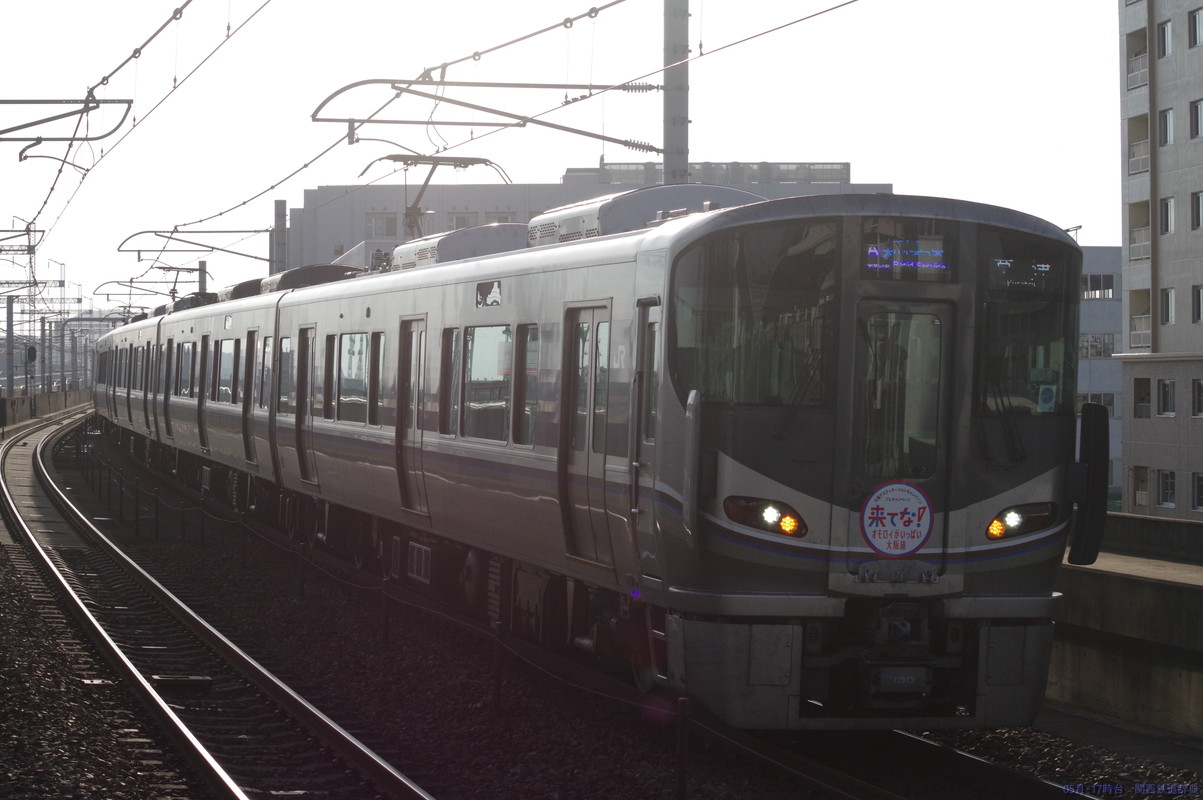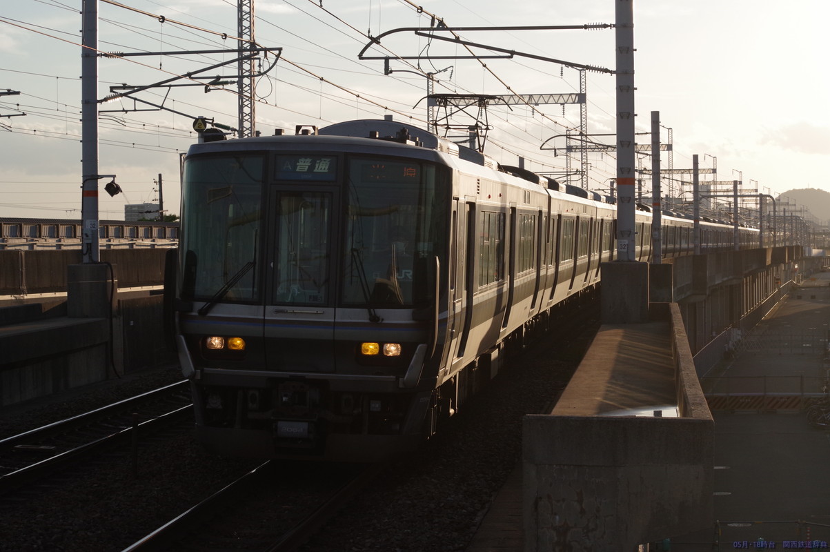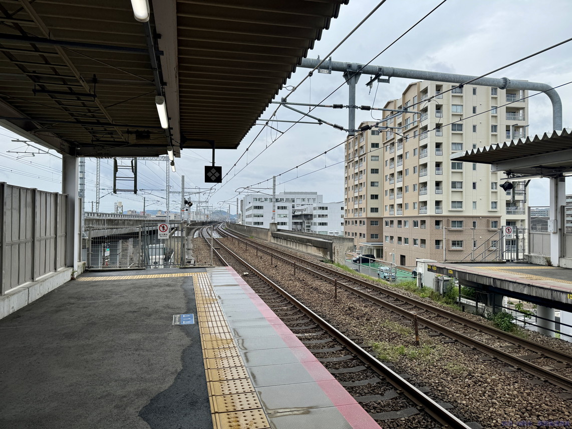 下りホームの下り方からの撮影。在来線は姫路からの直線が駅手前から駅にかけて緩くカーブをしており、正面向きから手前3両くらいの撮影に。