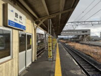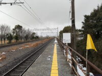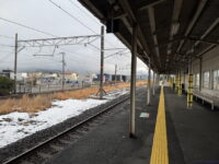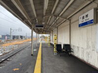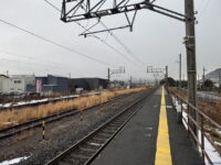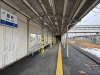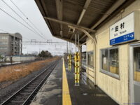 田村駅は両ホームの先頭が向かい合う形。ということで端から取ると向こうにホームが伸びるわけですが、ホームは客車列車のときの名残で14両ぶんくらいあります。ということでホームが必ず入ります。