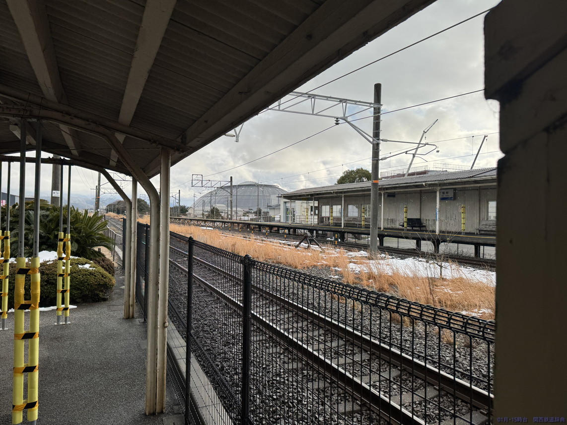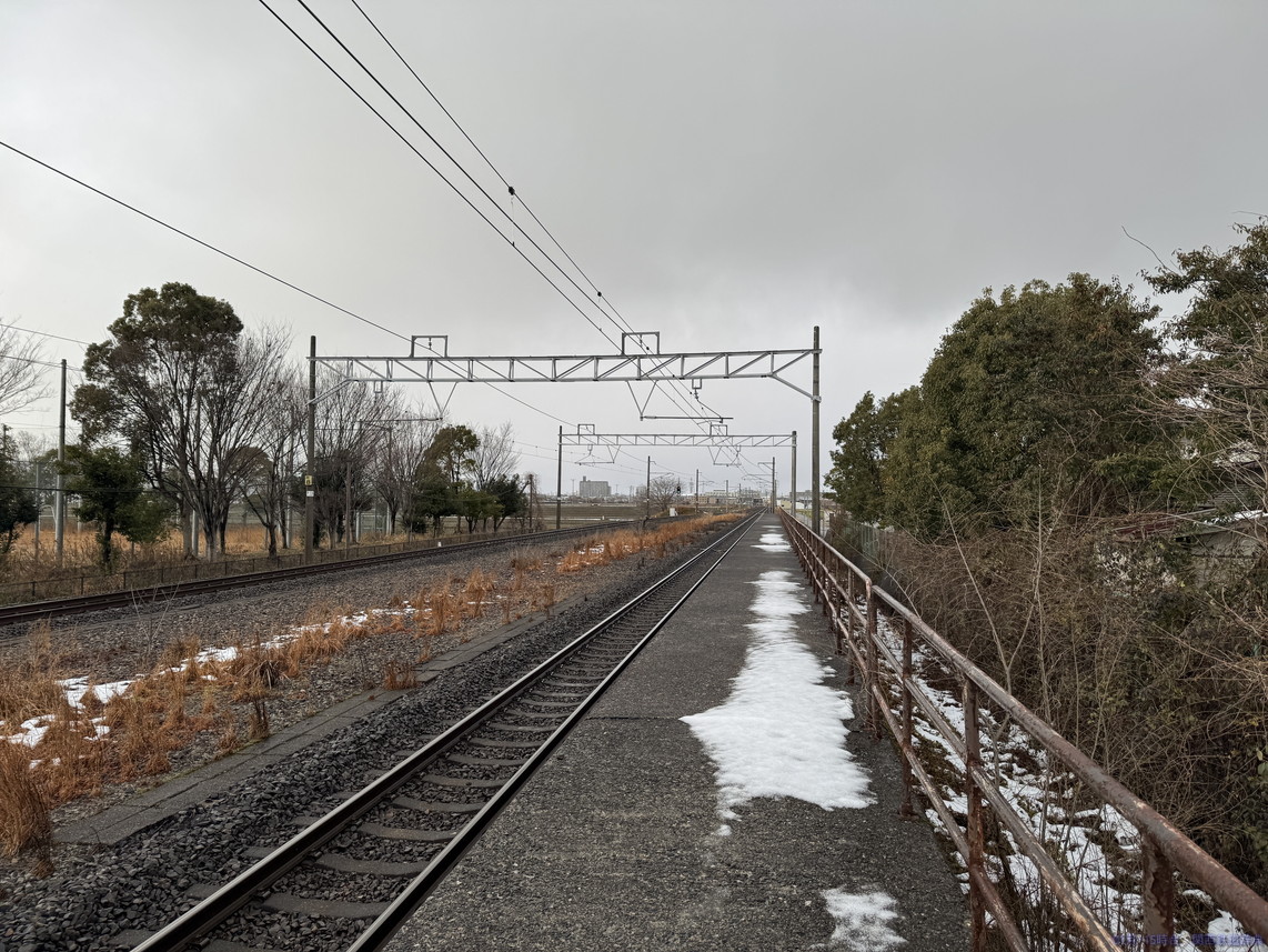 米原方面ホームからの敦賀方面行きも、似たようなものですが、逆側と異なり架線柱が被ります。