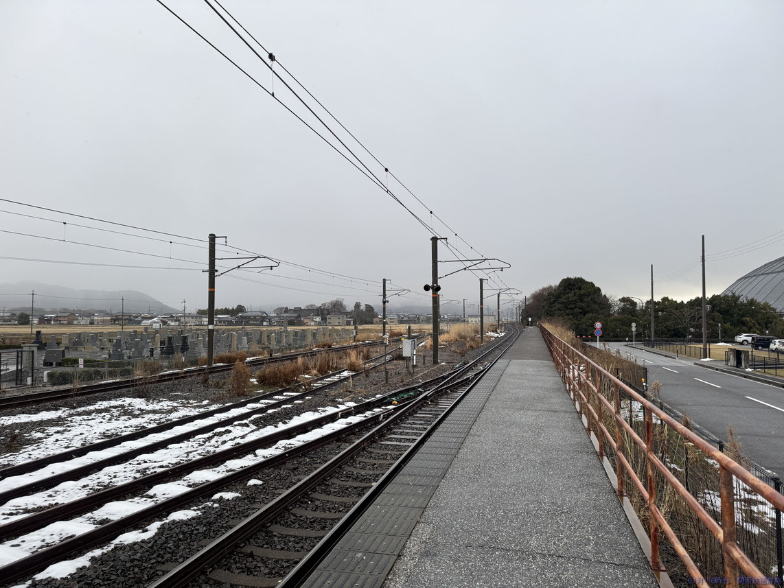 ホーム改札と反対側、黄線の先端からですが、まだまだホームは伸びています。ここまで8両分はあったのですが。