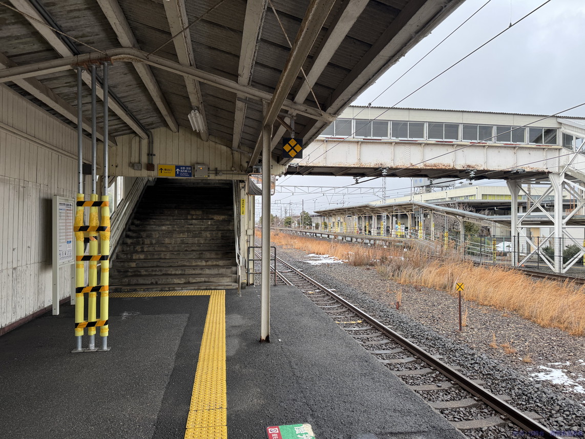 田村駅は両ホームの先頭が向かい合う形。ということで端から取ると向こうにホームが伸びるわけですが、ホームは客車列車のときの名残で14両ぶんくらいあります。ということでホームが必ず入ります。