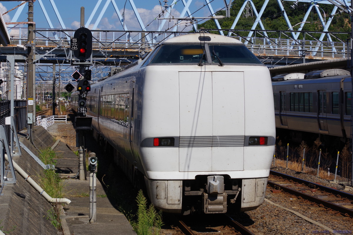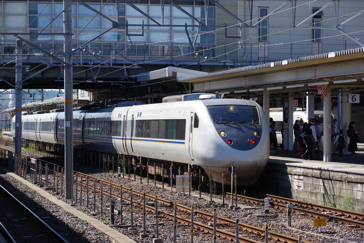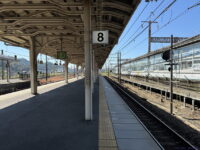 新幹線に接する端のホームとなる7・8番線。ホーム端には詰所があってあまり向こうが見えません。しらさぎは後ろが切れますが、横から来るのでギリ撮れます。