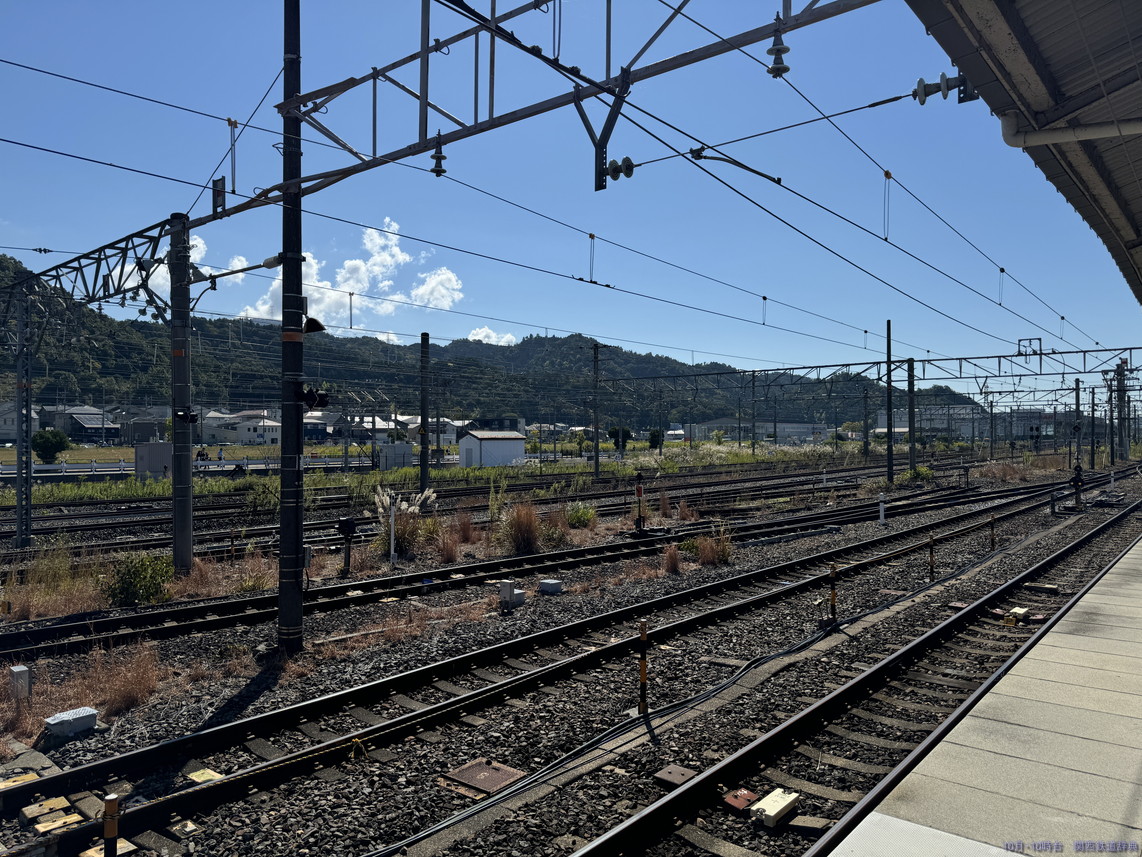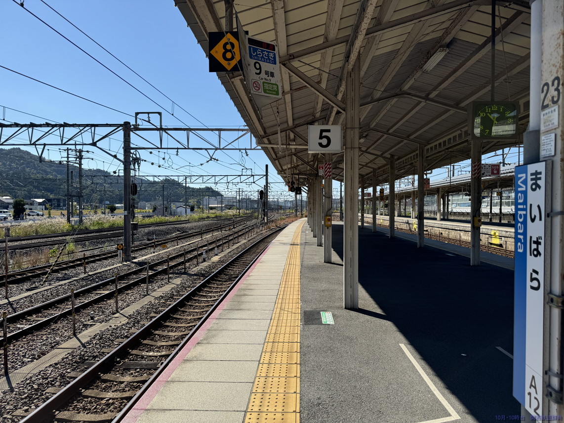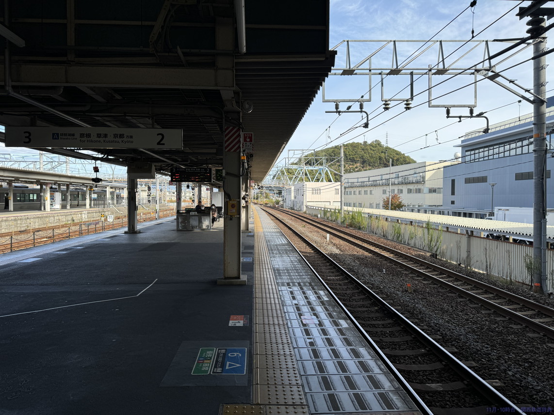 米原駅。JR東海とJR西日本の結節点であり、大阪からここまで来れば、東海地方を感じます。運転上も重要で多数の始発・終着のほか、新快速は常時連結開放、しらさぎも半数は始発終着・もう半数はスイッチバックなどなど。それゆえ複雑な配線となっており、撮影もホームごとのクセが強めです。