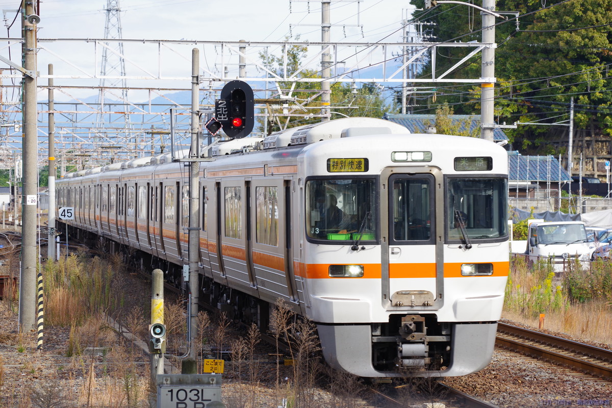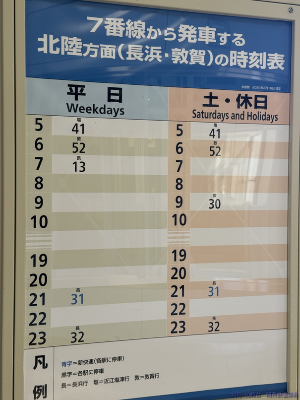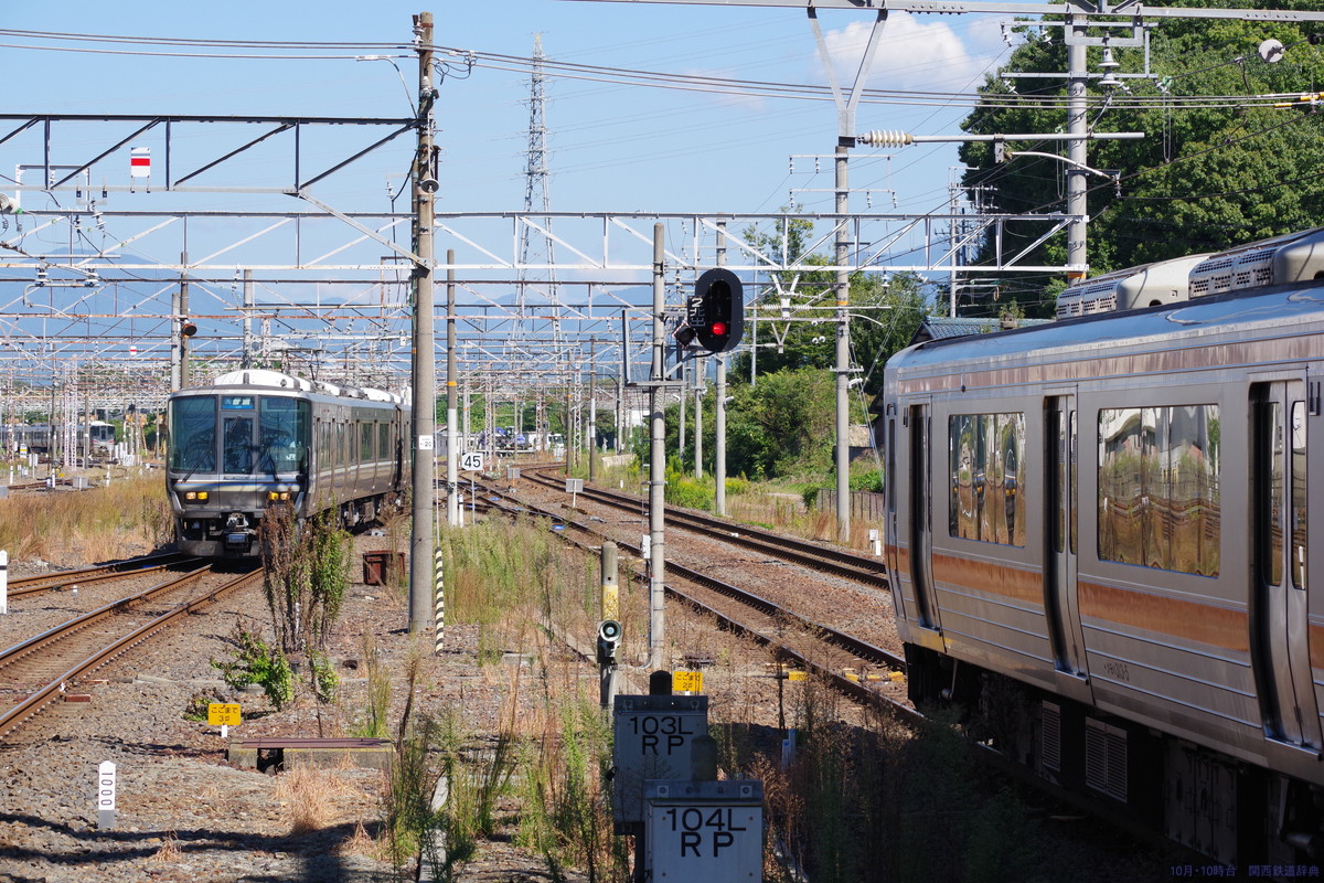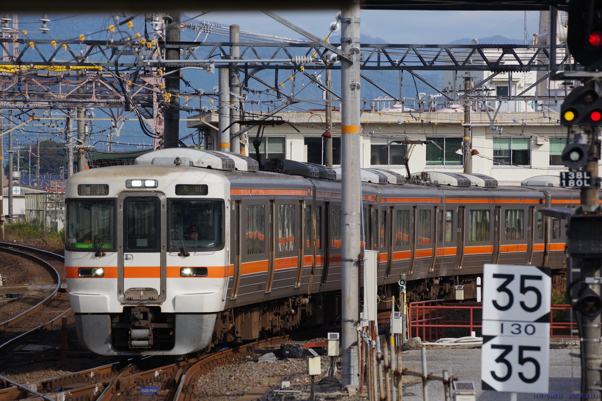 米原駅。JR東海とJR西日本の結節点であり、大阪からここまで来れば、東海地方を感じます。運転上も重要で多数の始発・終着のほか、新快速は常時連結開放、しらさぎも半数は始発終着・もう半数はスイッチバックなどなど。それゆえ複雑な配線となっており、撮影もホームごとのクセが強めです。