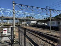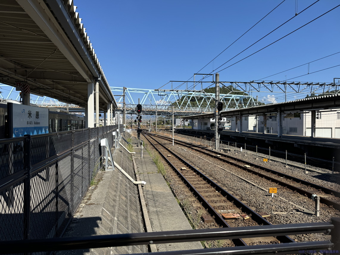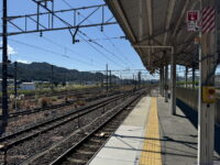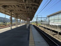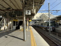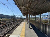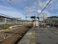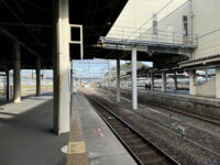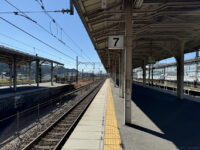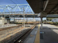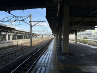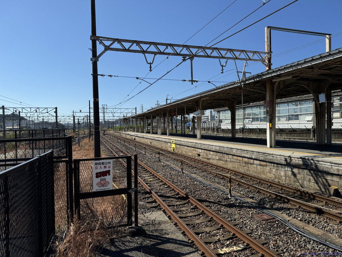 2・3番線ホームの東京方からの撮影。この駅ではこちらが一番撮影しやすい気がします。ホーム端まで黄線があり、架線柱はあるものの、各ホームに入る列車が見やすいです。駅横に跨線橋があるので中程度の望遠は必要。