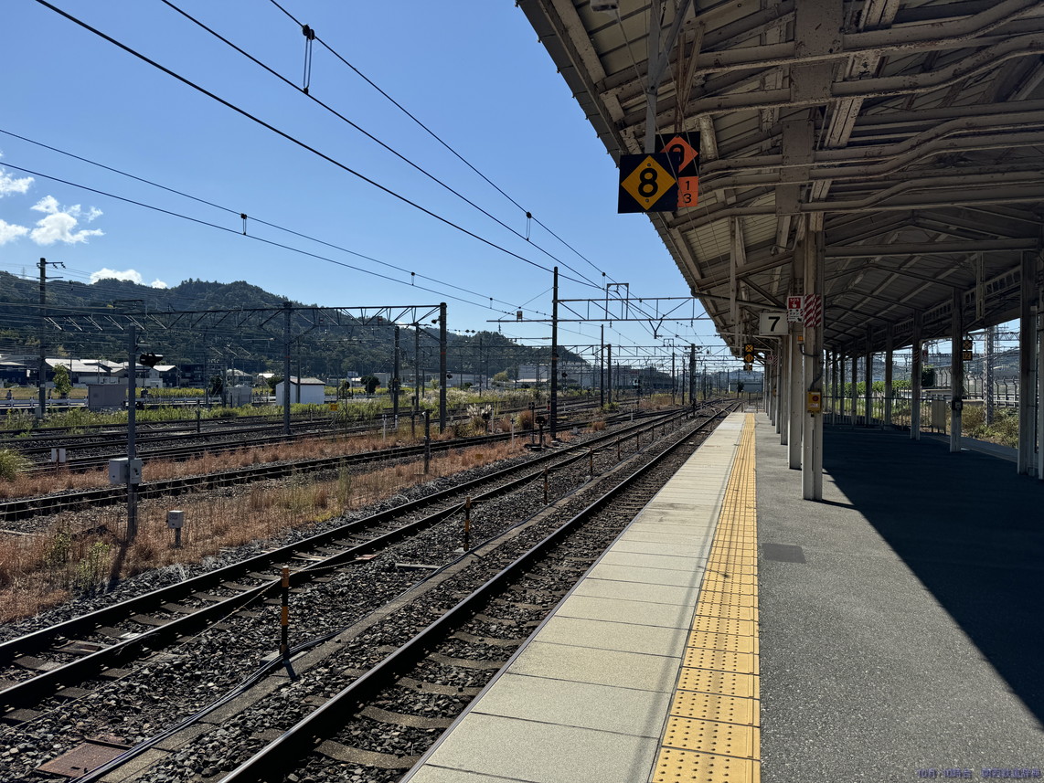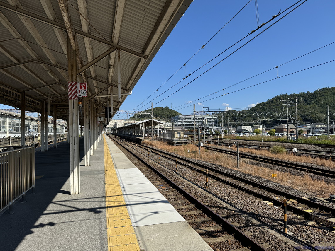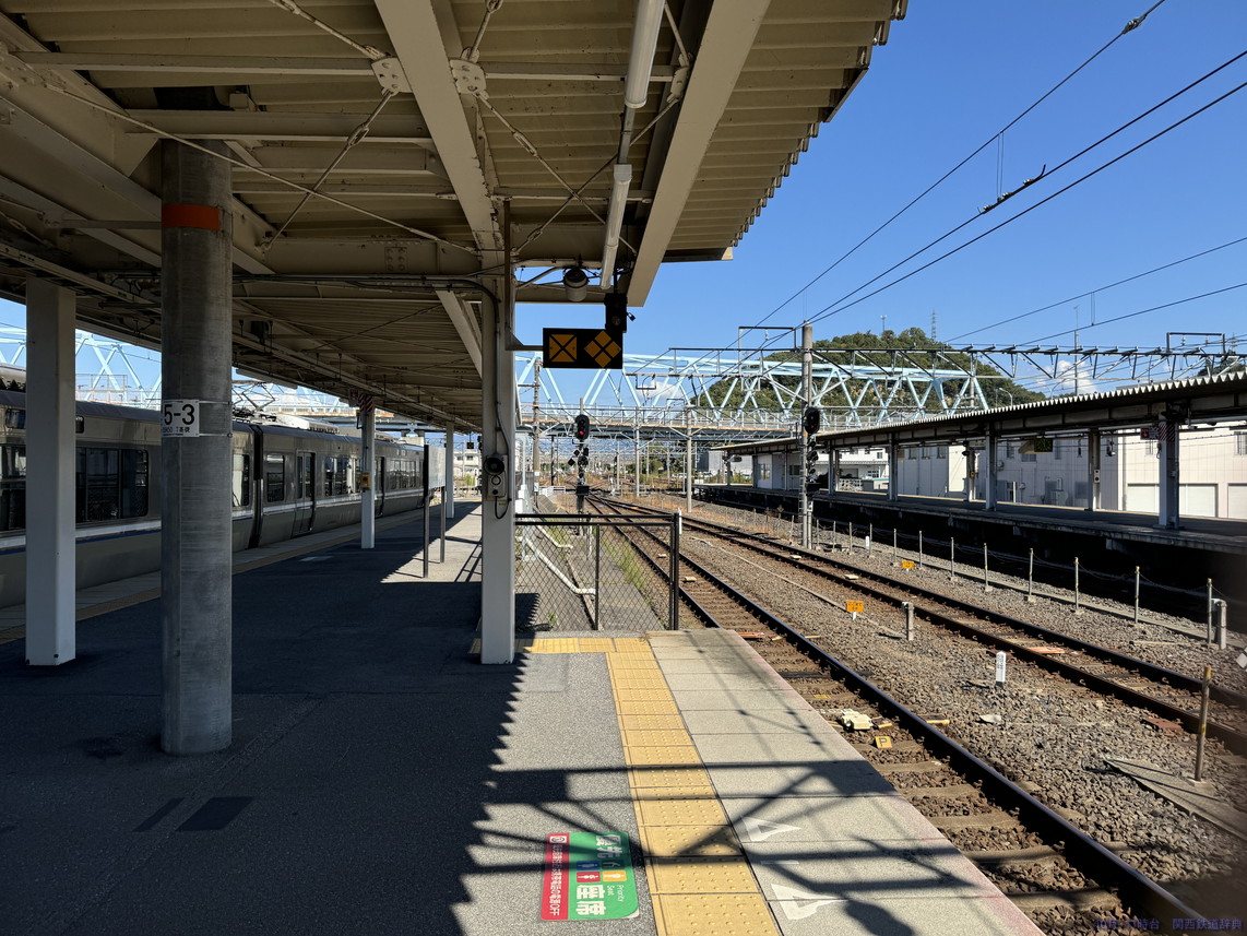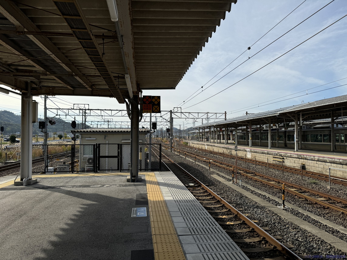 1番線は通過線でホームがないため、2・3番のりばが下りホーム。2番は主に大垣からの普通列車到着、3番は京都方面に向かうほぼ全列車が発着します。