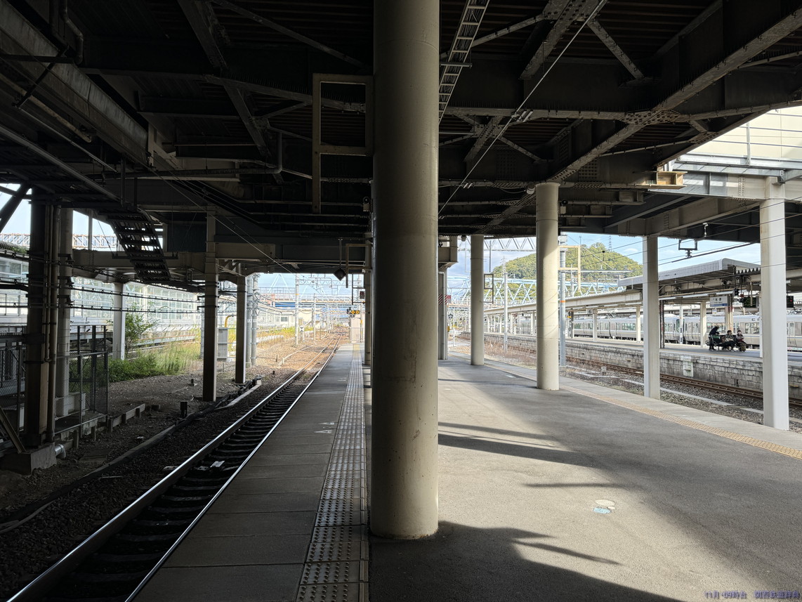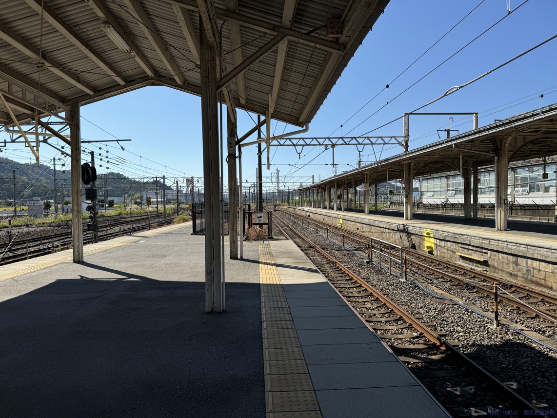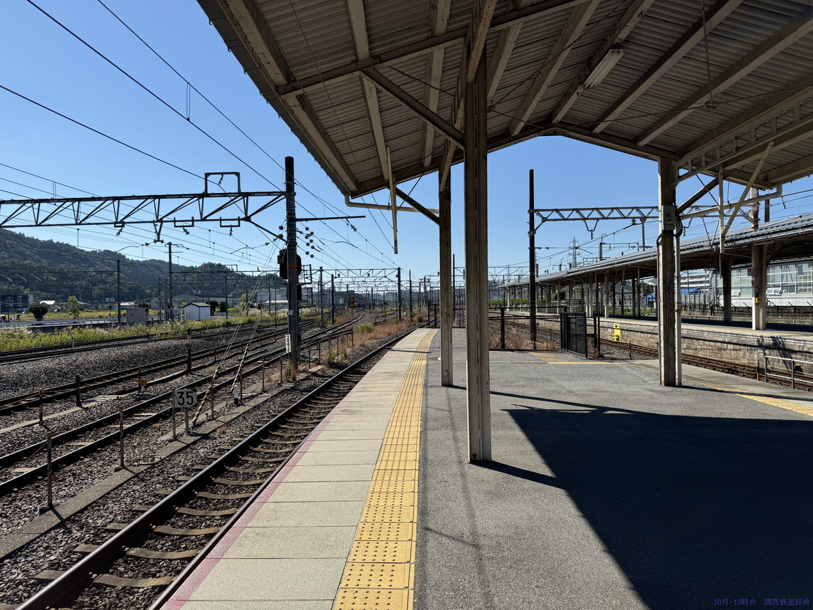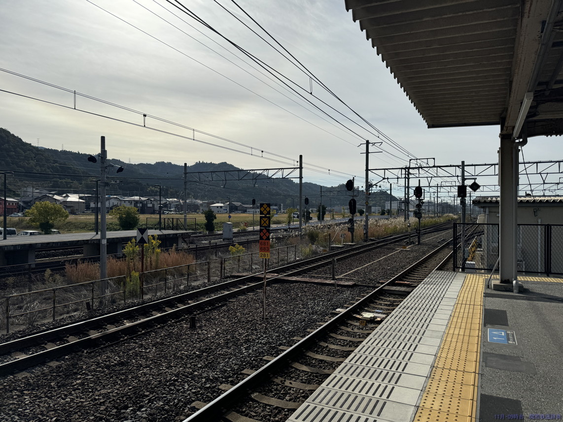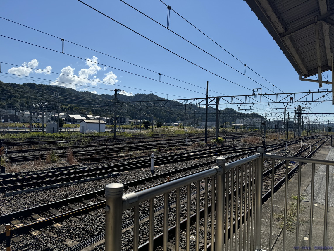 1番線は通過線でホームがないため、2・3番のりばが下りホーム。2番は主に大垣からの普通列車到着、3番は京都方面に向かうほぼ全列車が発着します。
