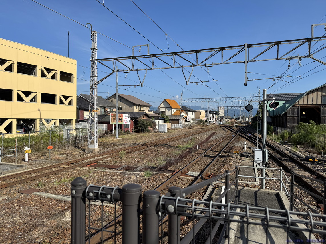 島式ホーム米原方からの敦賀行き列車撮影。こちらのほうが車庫内と撮影しやすいでしょうか?