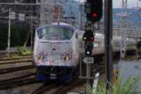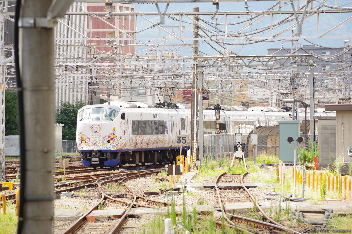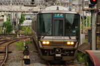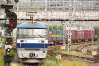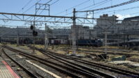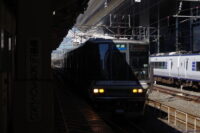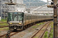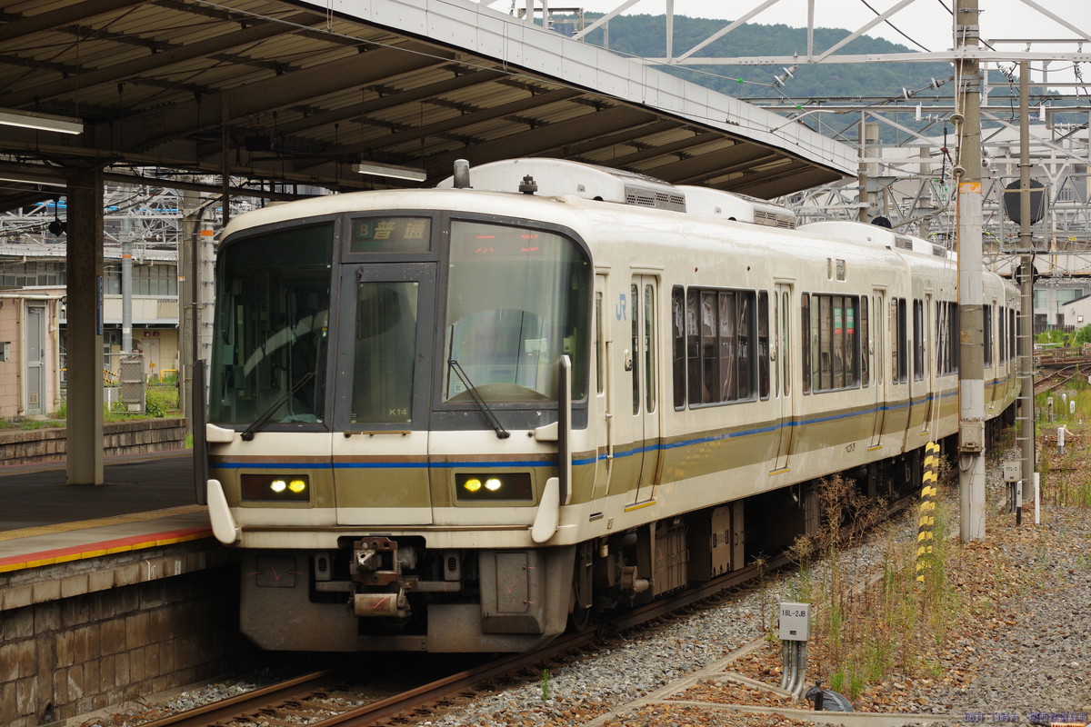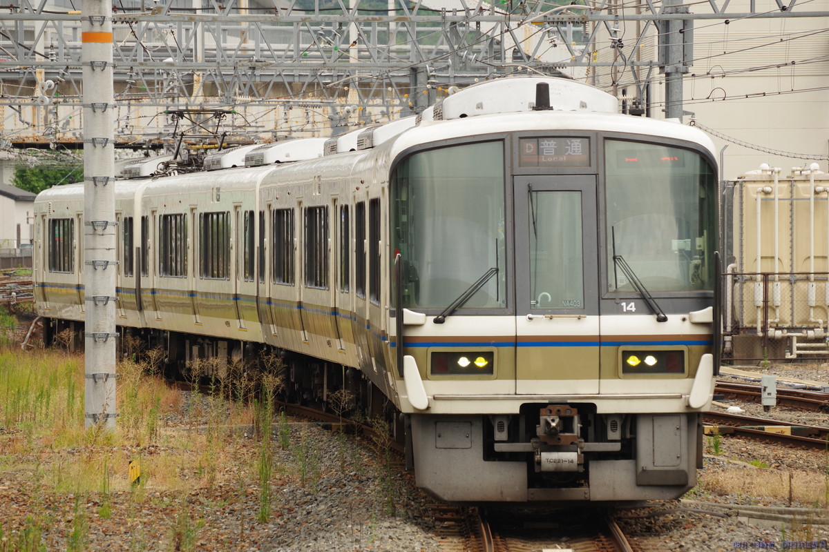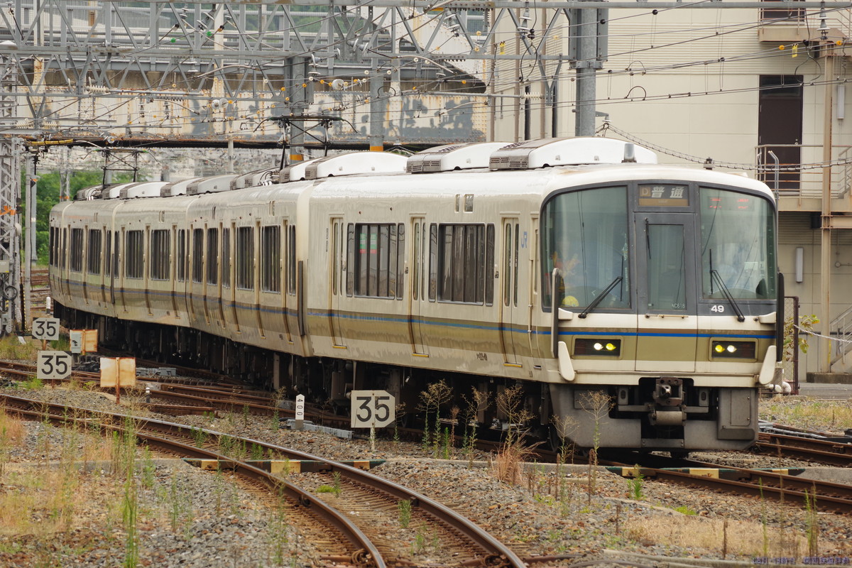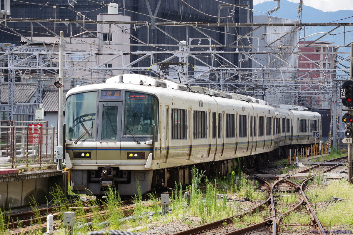 何のことはない駅撮りです。貨物列車の通過は、主に特急が停車する0番線と新快速・快速が停車する2番線の間にある中線=1番線を通ることが多く、0番線からでも側面の撮影が可能。甲種は梅小路で長時間停車するためか、他駅からの移動やら学校帰りの学生やらで撮影者が集まりやすいです。目玉の際は駅員が出ますが…結構フリーダム。