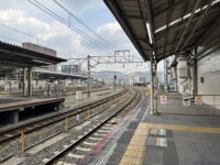 なお0番乗り場は8両以上列車は2番線のホーム端よりも米原方に止まるので、停車前を撮影することになります。また2番乗り場は新快速と快速の両方が発着し停車時間も長めなので被る可能性があります。さらに2番乗り場にホームドアができたので、それが被りやすくなりました。