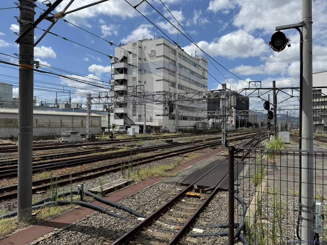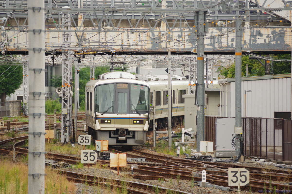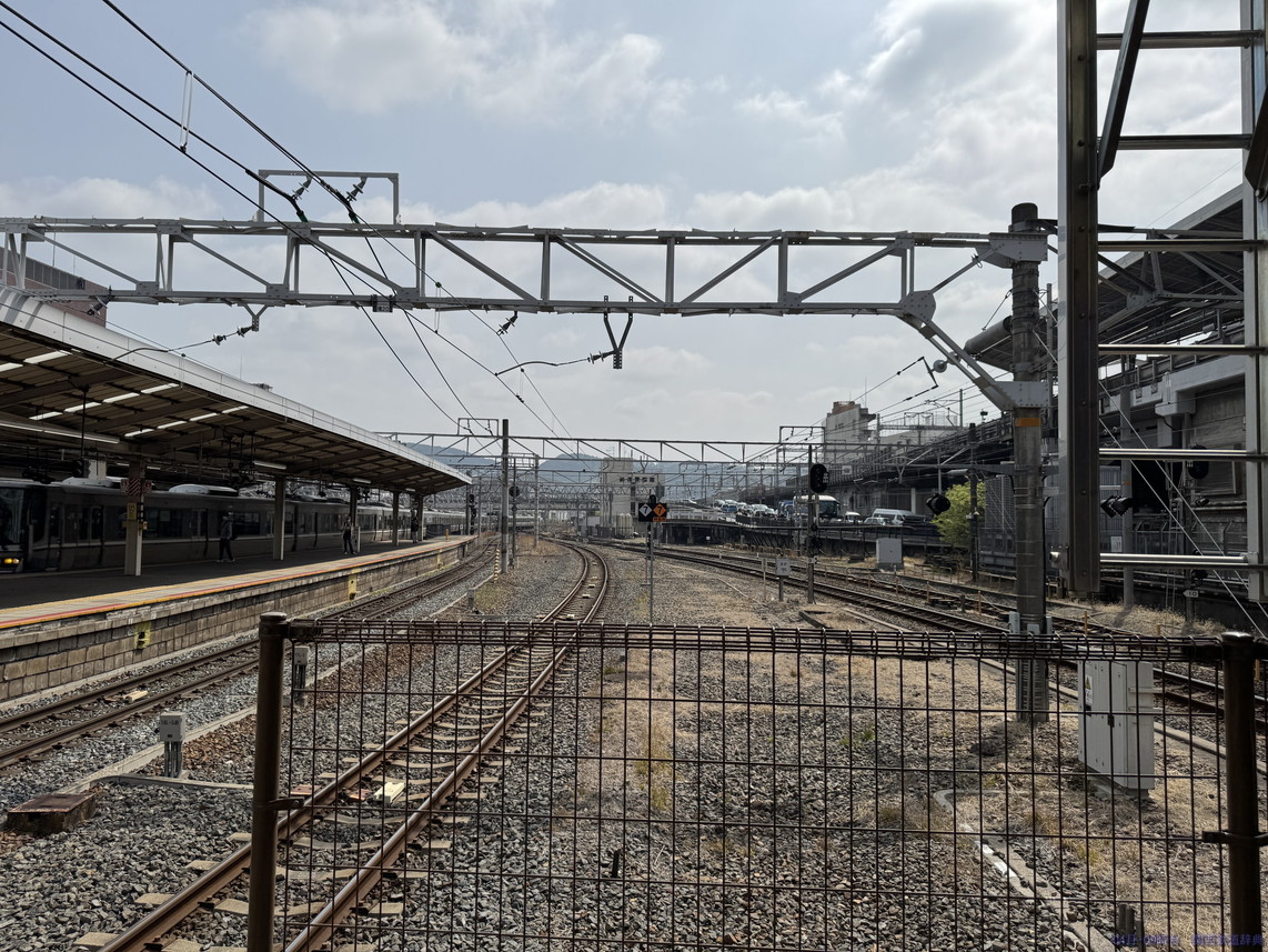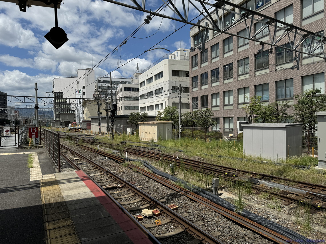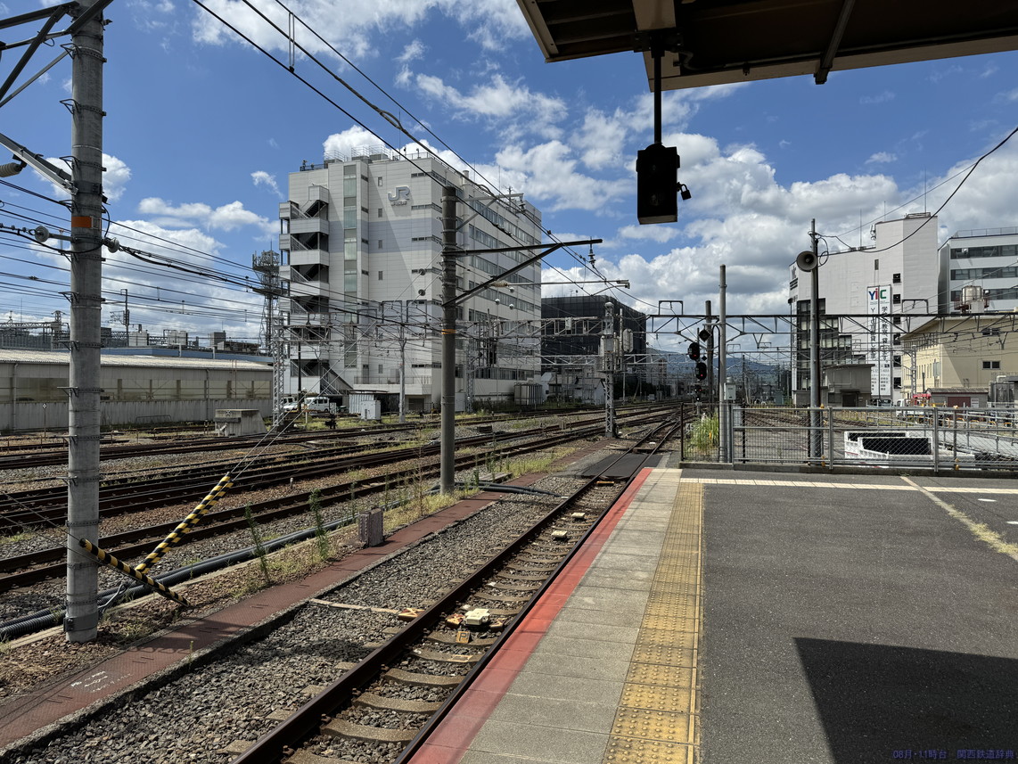 6・7番のりばホームからは、5番のりばに入る下り列車や奈良線の列車が撮影できます。ホーム端はいろいろあるので、下がって望遠で…とはいえ、奈良線以外は特に良い場所というわけではないです。