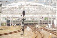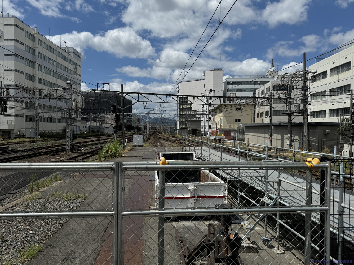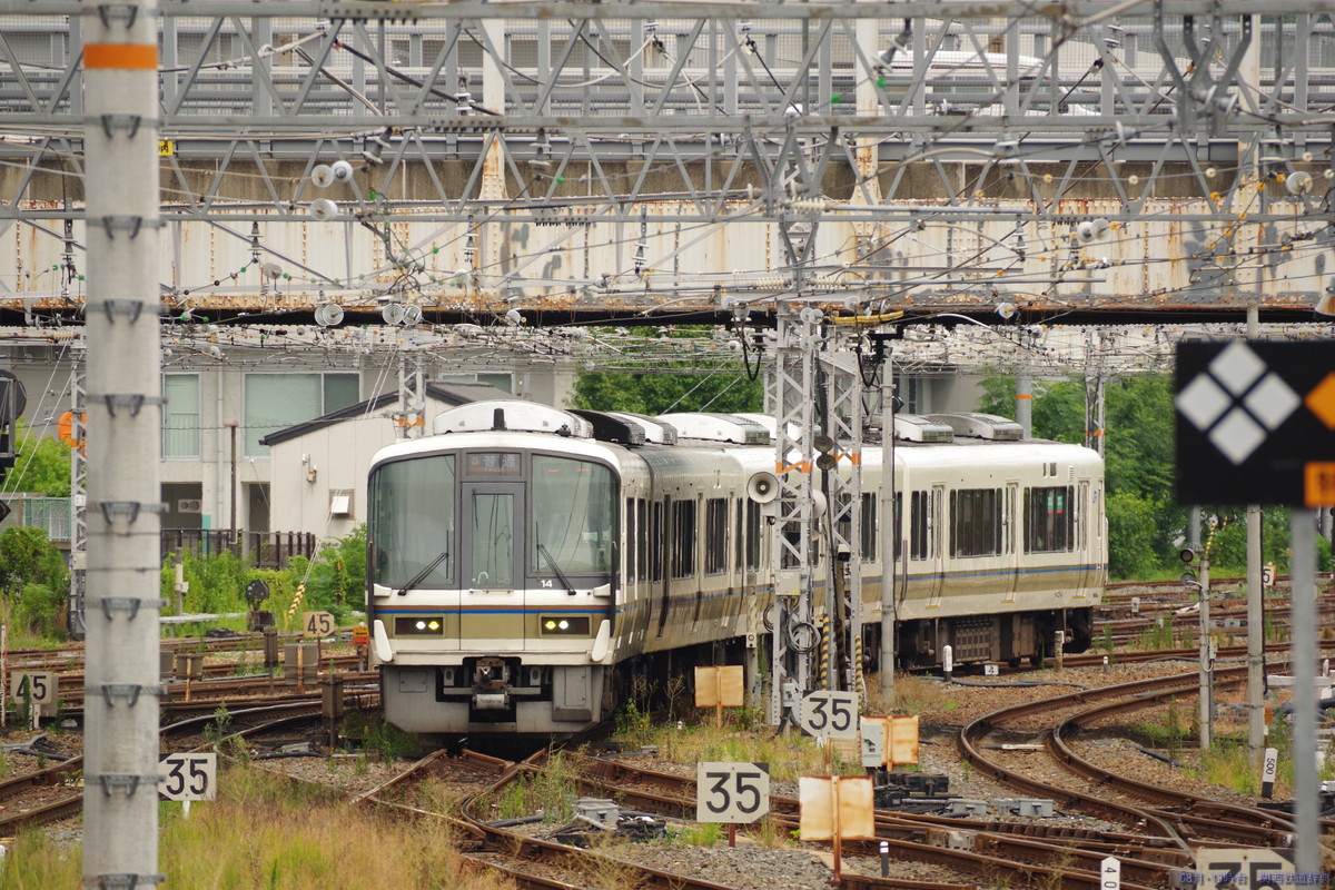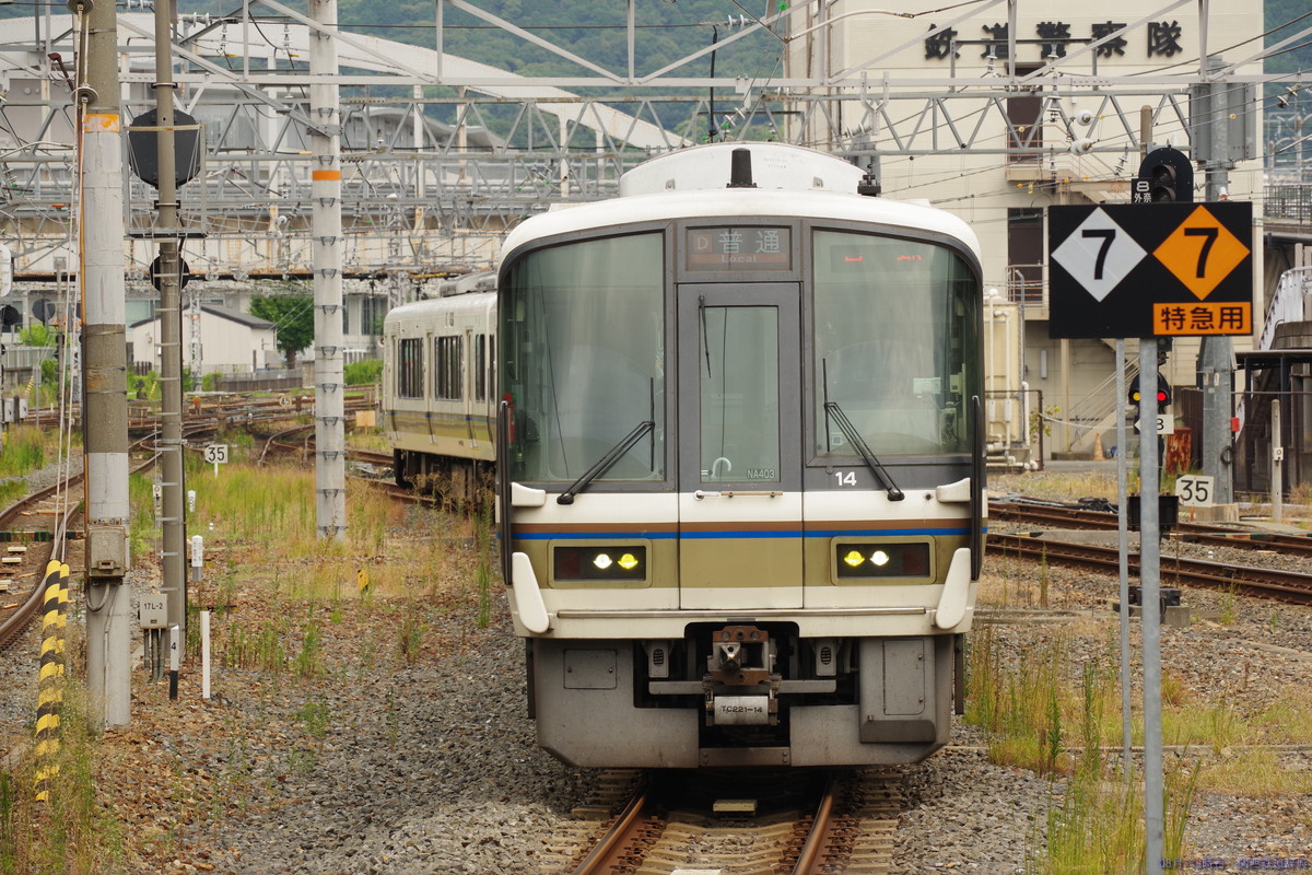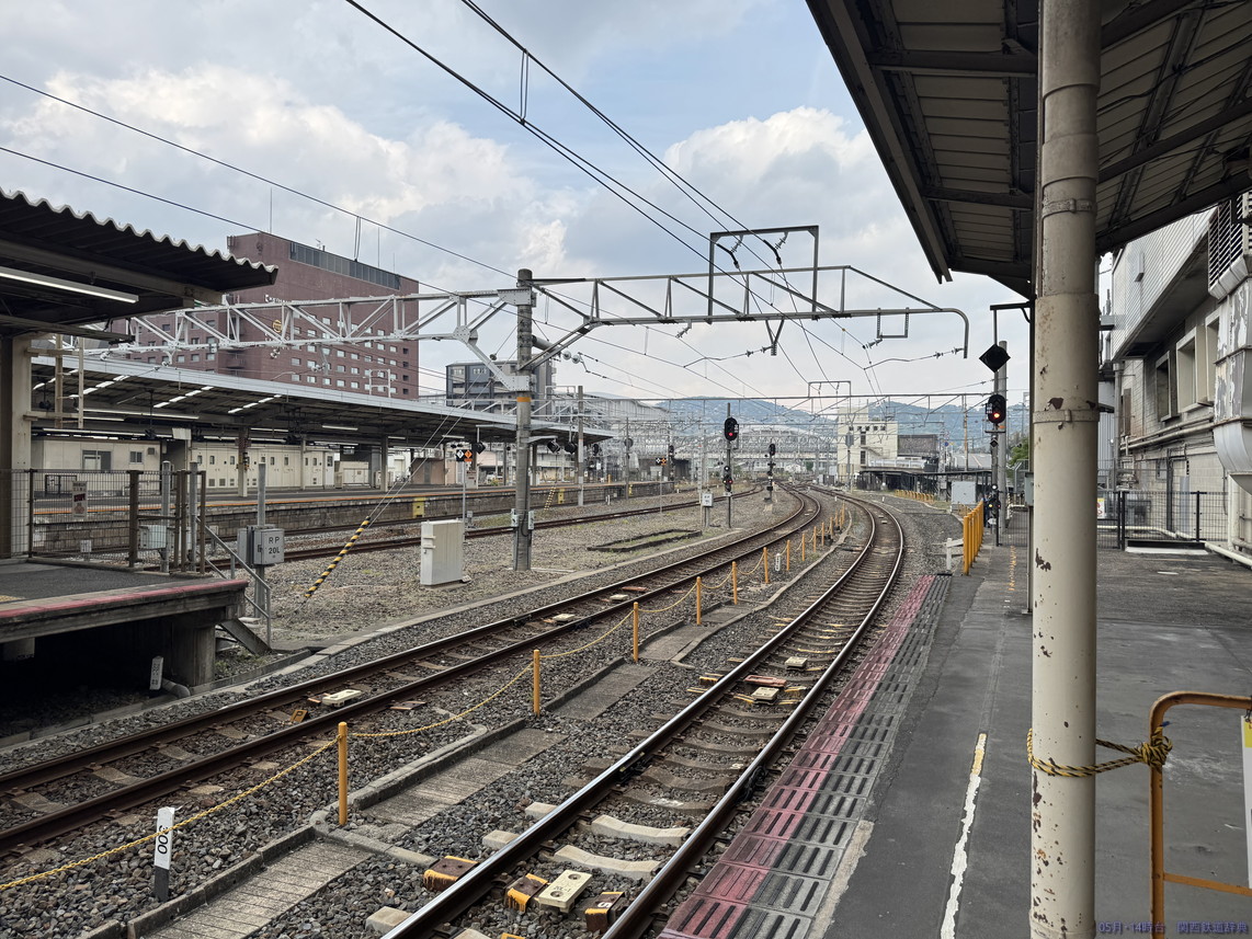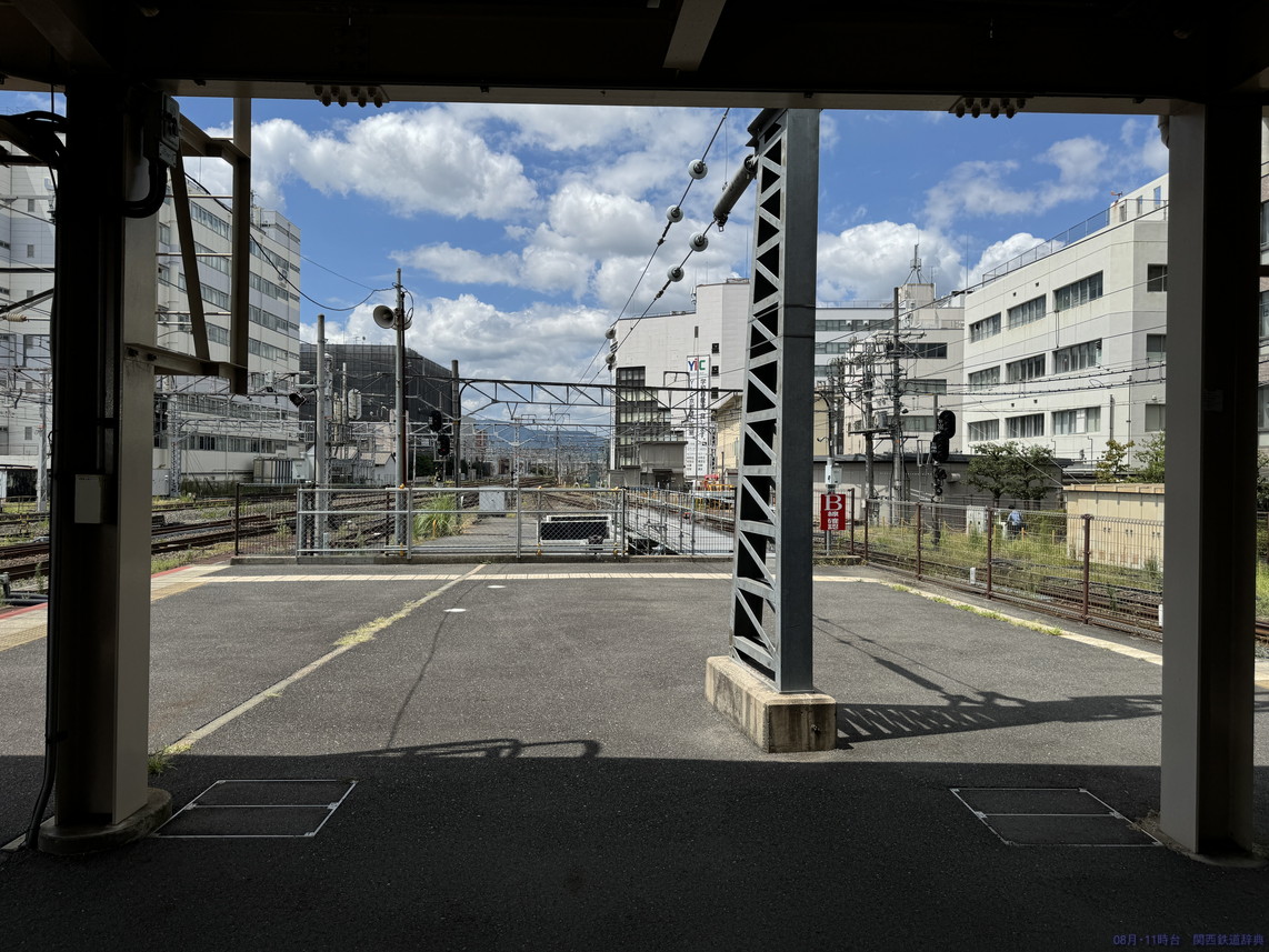 6・7番のりばホームからは、5番のりばに入る下り列車や奈良線の列車が撮影できます。ホーム端はいろいろあるので、下がって望遠で…とはいえ、奈良線以外は特に良い場所というわけではないです。