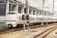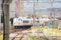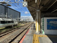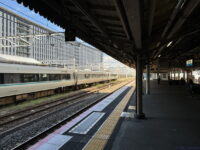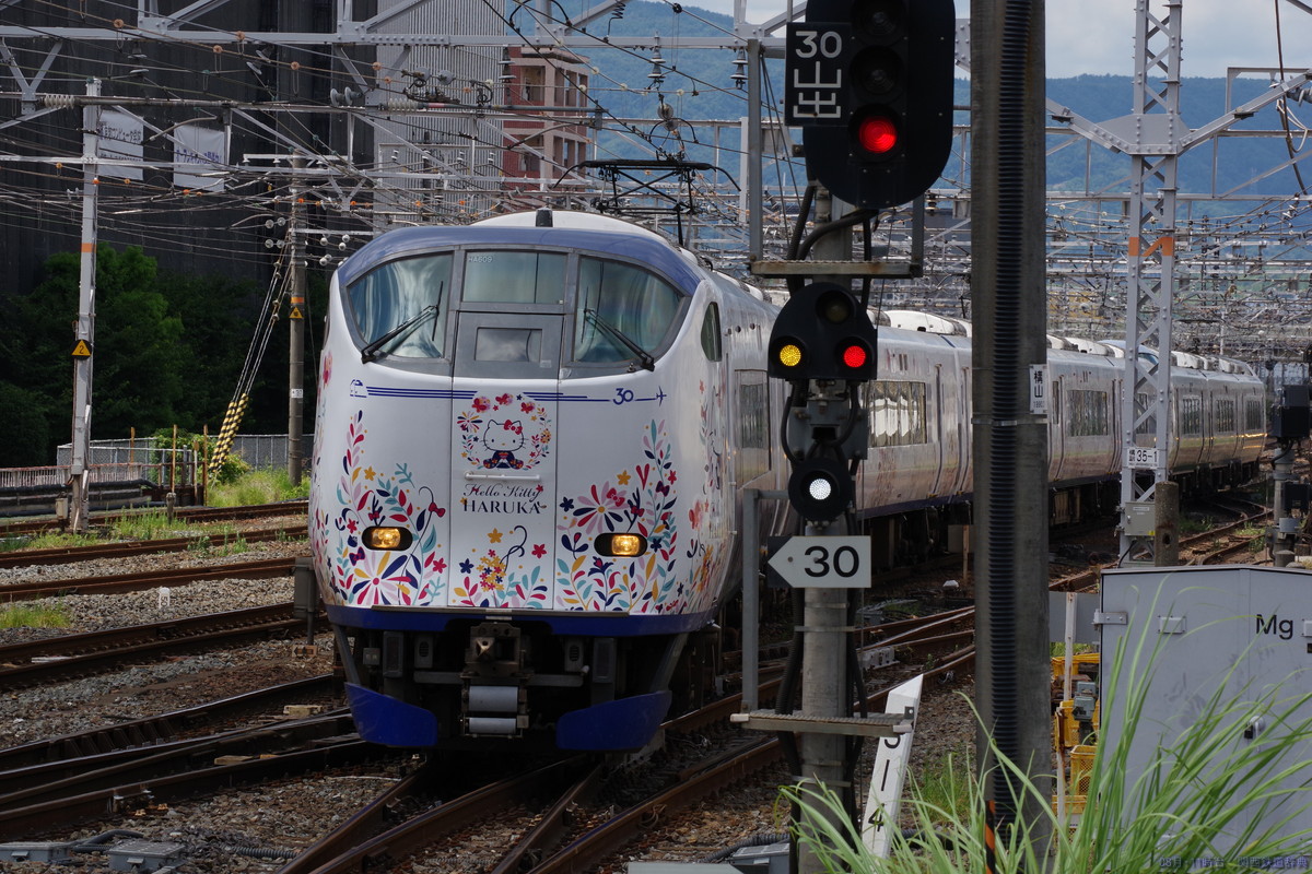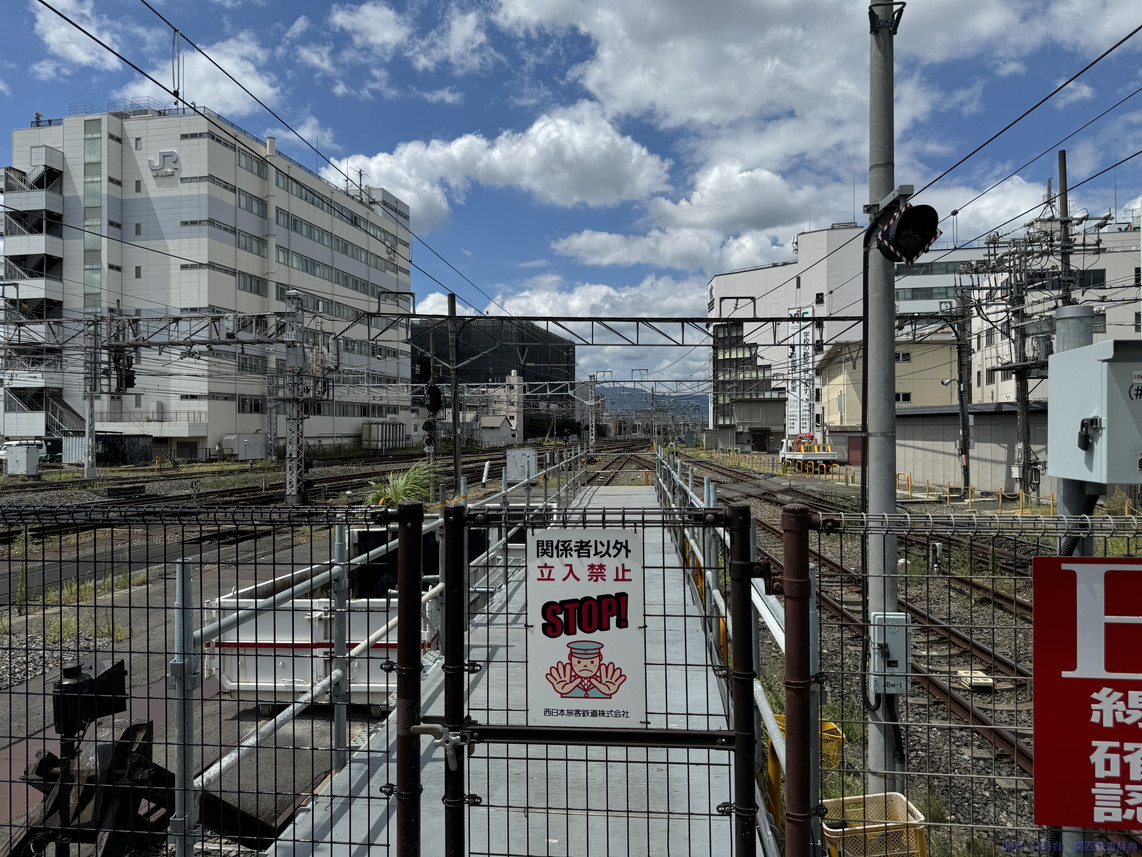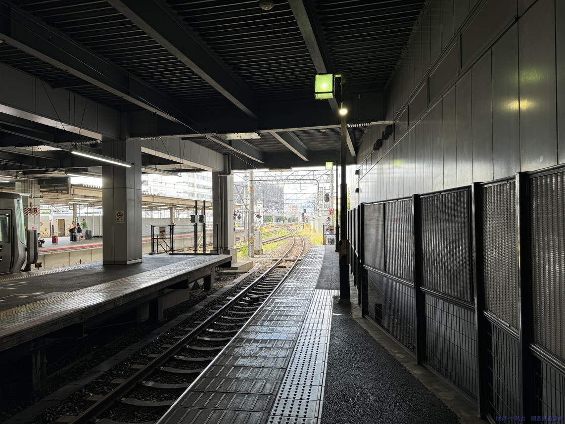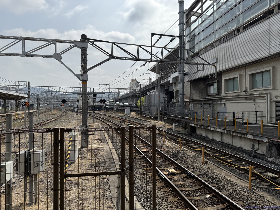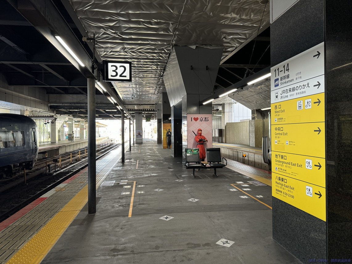 はるかおよび嵯峨野線特急が停車するホームの端。意外に広くなっており、嵯峨野線の到着列車が撮影できます。ただアウトカーブになるため、前4両くらいが限度。