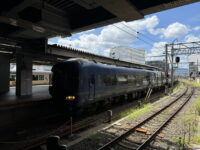 停車中の列車については、0番線は非常に天井が高く、足下は光沢があるため、独特の表情があります。特に平日夕方の草津線直通が旅情を醸します。