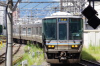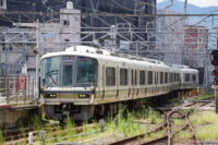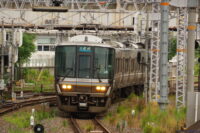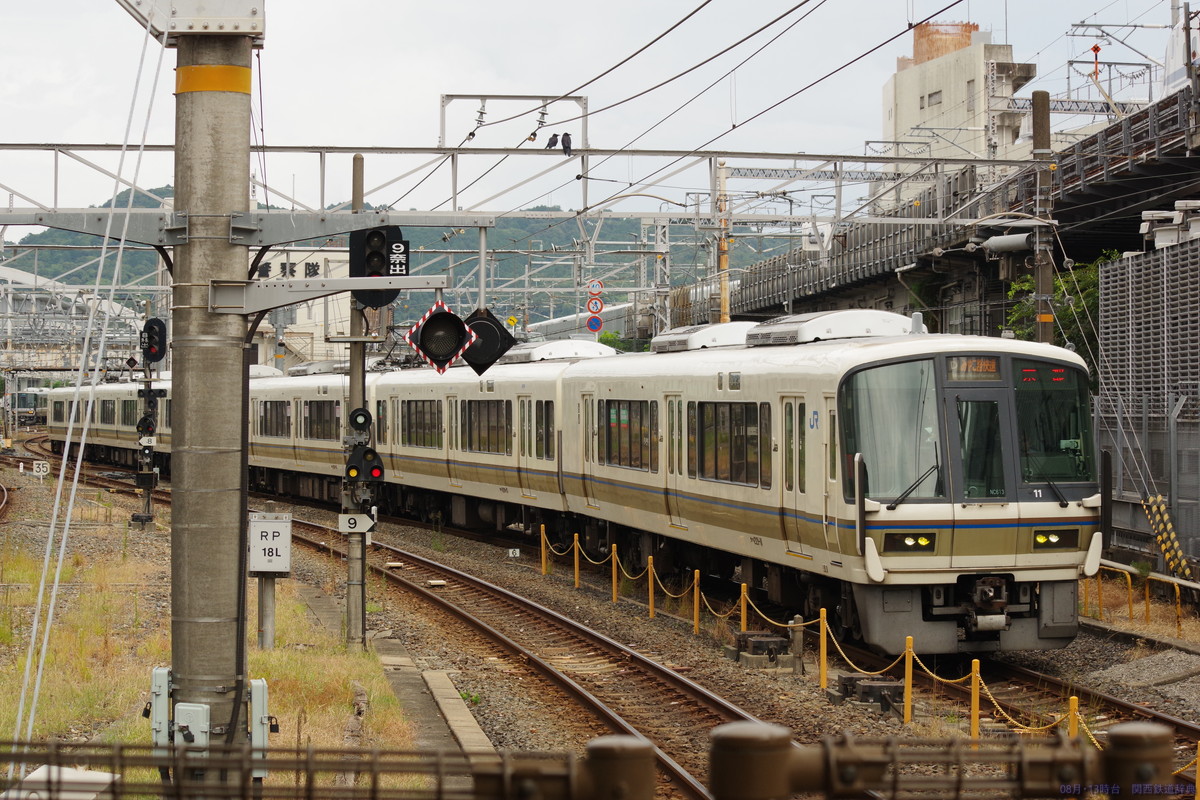 【JR京都線】(琵琶湖線・湖西線<)- 京都 -(駅間)- 西大路 -(駅間)- 桂川 – 向日町 – 長岡京 -(駅間)- 山崎 -(駅間)- 島本 -(駅間)- 高槻 -(駅間)- 摂津富田 -(駅間)- JR総持寺 – 茨木 -(駅間)- 千里丘 – 岸辺 – 吹田 – 東淀川 – 新大阪 -(駅間)- 大阪 -(>JR神戸線)