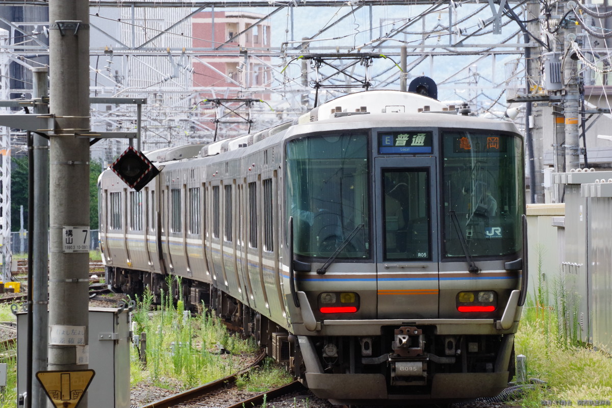 京都 -(駅間)- 丹波口 – 二条 – 円町 – 花園 -(駅間)- 太秦 -(駅間)- 嵯峨嵐山 -(駅間)- 保津峡 -(駅間① 駅間② 駅間③)- 馬堀 -(駅間)- 亀岡 – 並河 – 千代川 – 八木 – 吉富 – 園部